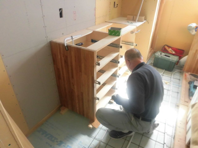 製作建具を順次取り付けしていきます。