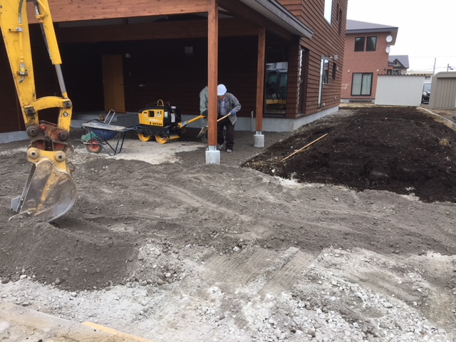 コンクリート舗装の下地をつくっています。