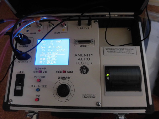 最後に気密測定をして工事完了です。