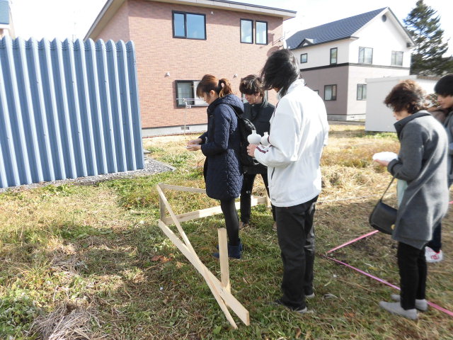 最後に祭壇にお供えした米・酒・塩・水をお施主様とご家族で土地の四隅を清めて無事終了です。