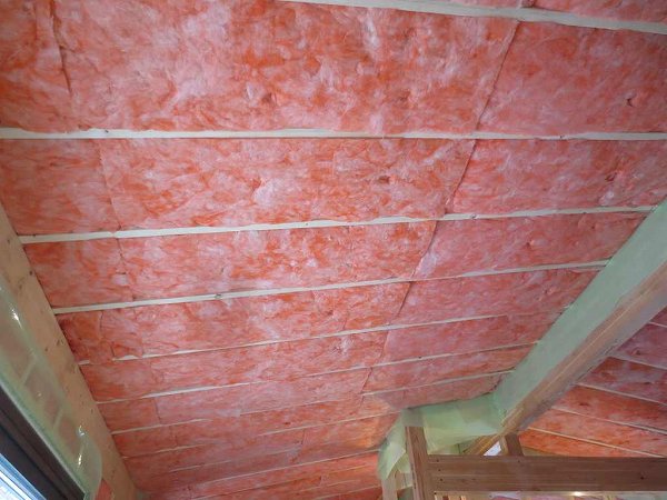 先ずは屋根下地の間に200㎜を隙間なく充填して
