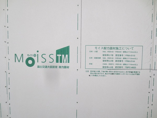 こちらは外壁に使う耐力面材で「モイス」と言います。