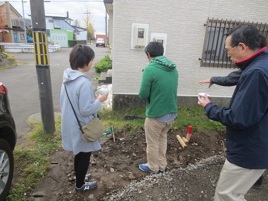 地鎮祭後は土地の四隅を清めます。