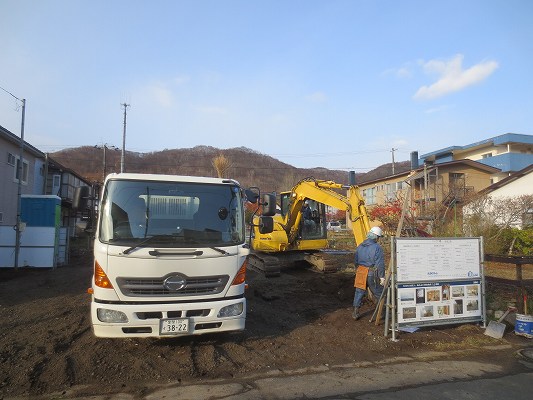 今回は地盤調査の結果、杭が必要なく直接基礎でOKでしたので早速掘削開始です。
