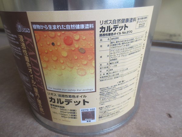 おなじみリボス社の塗料です。亜麻仁油が主成分の食品基準で作られた塗料です。
