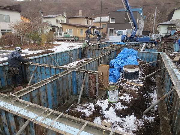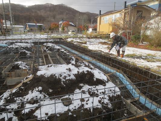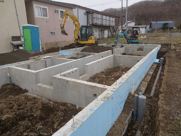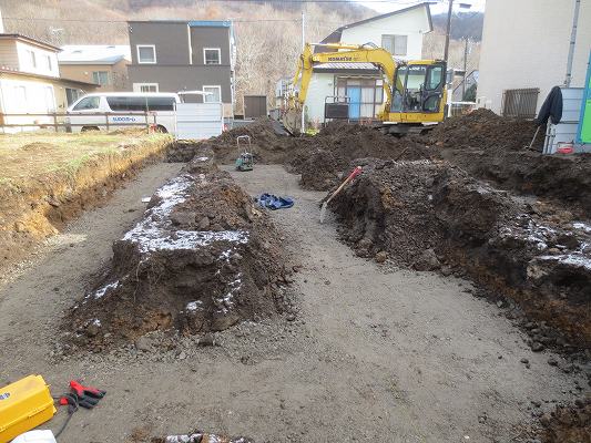 基礎が出来上がったので雪が降る前に埋め戻しです。