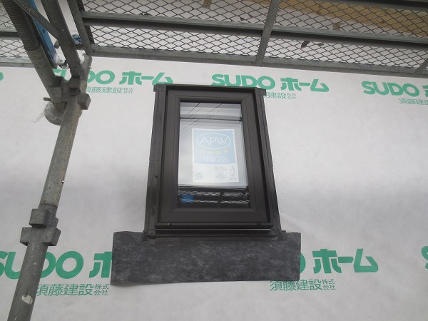 幅広の黒いシートは「防水水切りシート」と言って、窓水切りを取り付ける場所に補強で張っています。