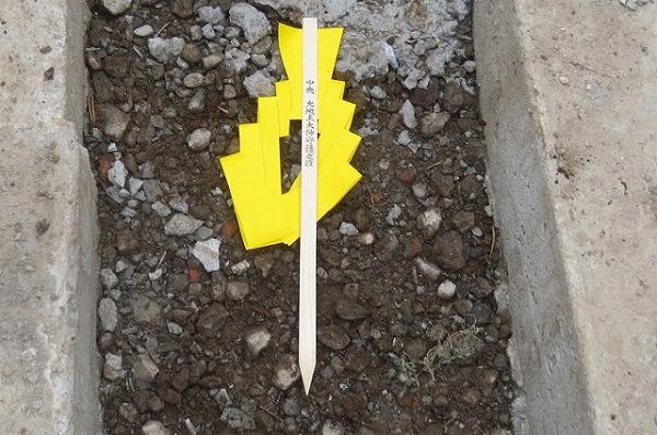 埋め戻しする前に地鎮祭の時に神社さんから頂いた『鎮め物』を埋めます。