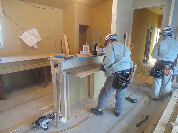 キッチンカウンターの造作をしてきます。