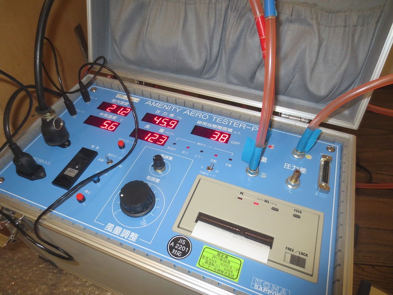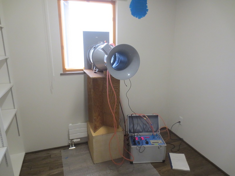 内部の工事が全て終わったら気密測定を行います。