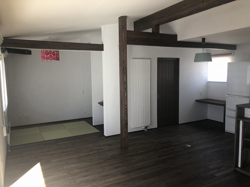 塗りあがりました。左奥のフリースペースには置きタタミを敷いています。