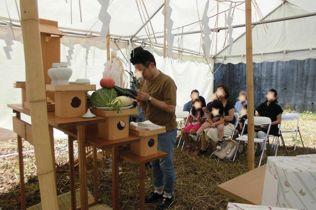 お施主様とご親戚の皆様と一緒に地鎮祭を執り行いました。