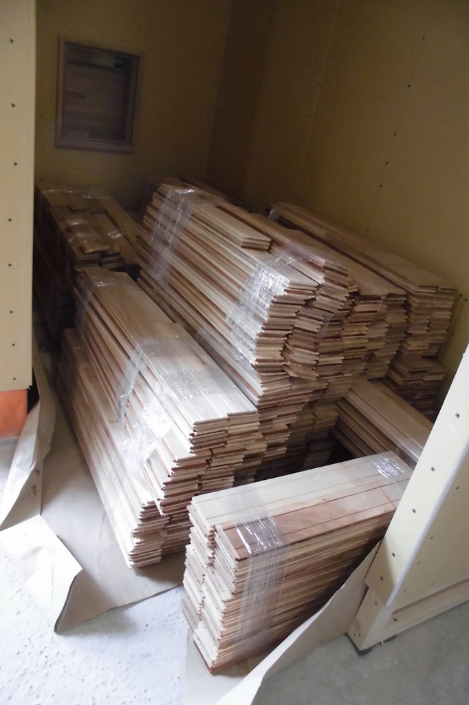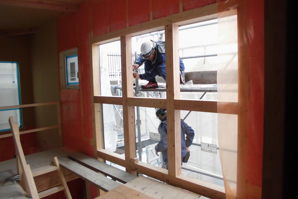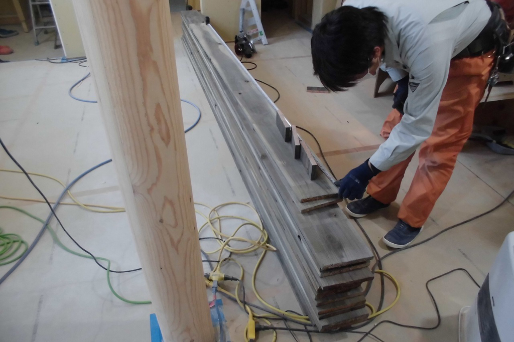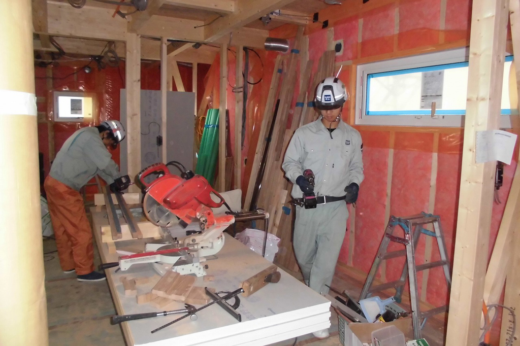 室内では事前に加工した枠材を取付する準備が進んでいます。