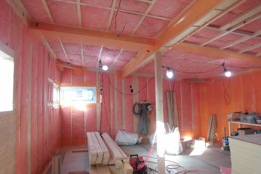 壁面にもふかふかの付加断熱を施工します( ̄▽ ̄*)
