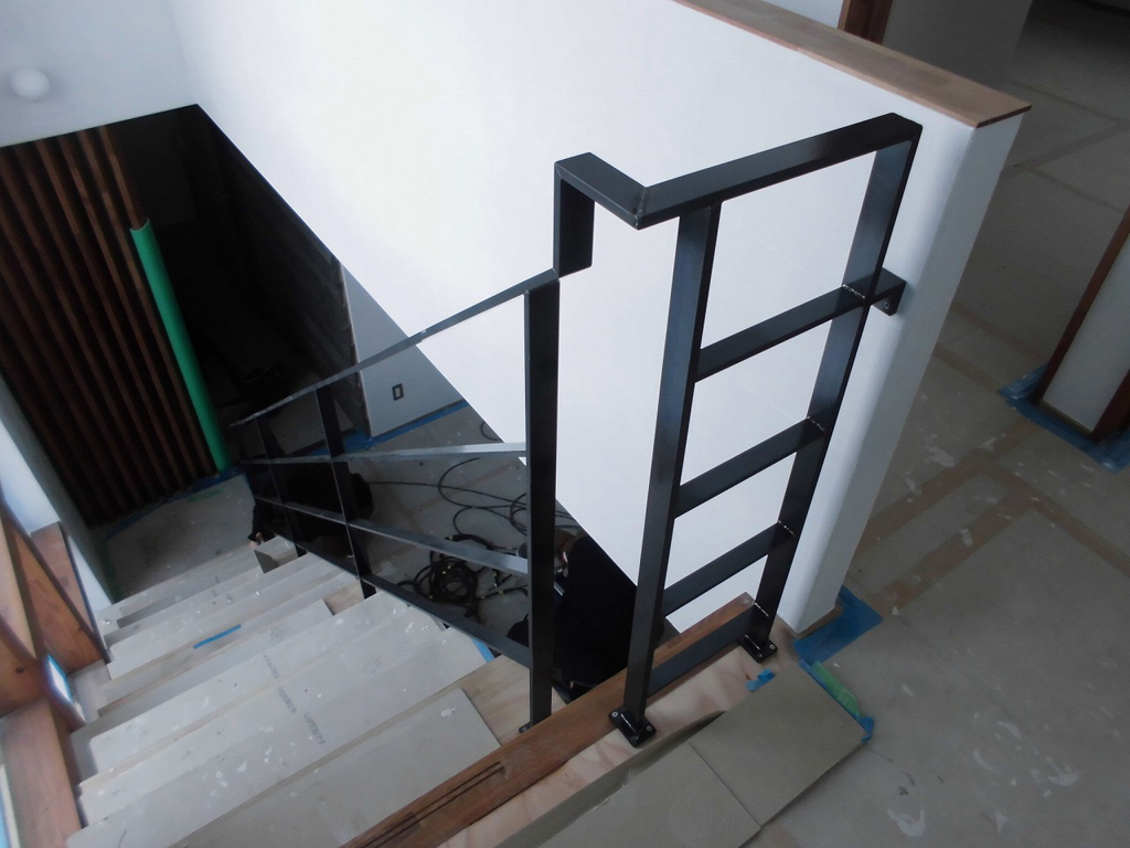 階段手摺は事前に組立てたパーツを現場で溶接して、施工します。