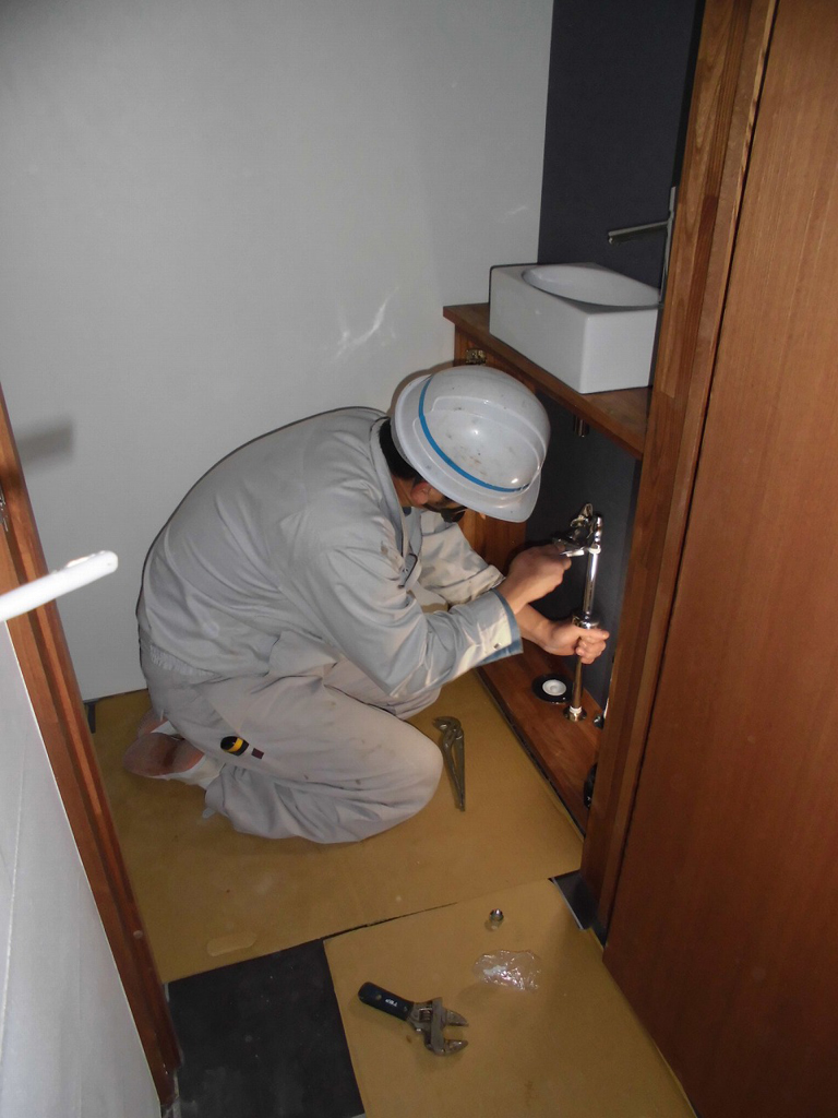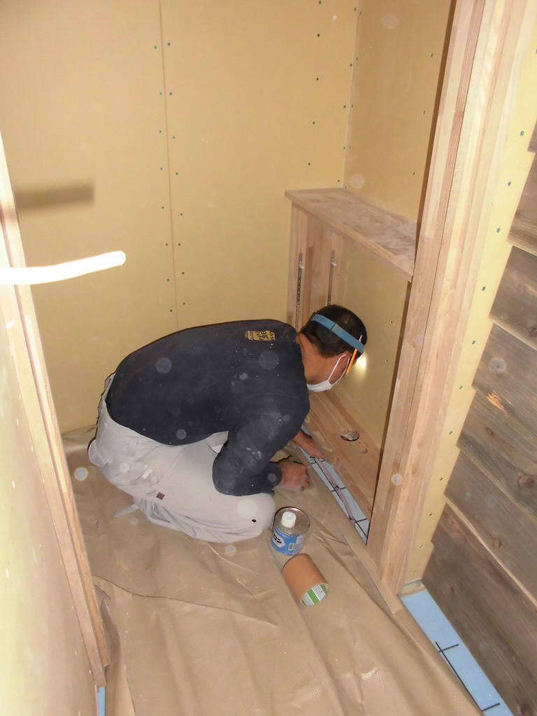 内装仕上完了後は、順番に業者さんが出入りし、様々な器具の取付を行っていきます。