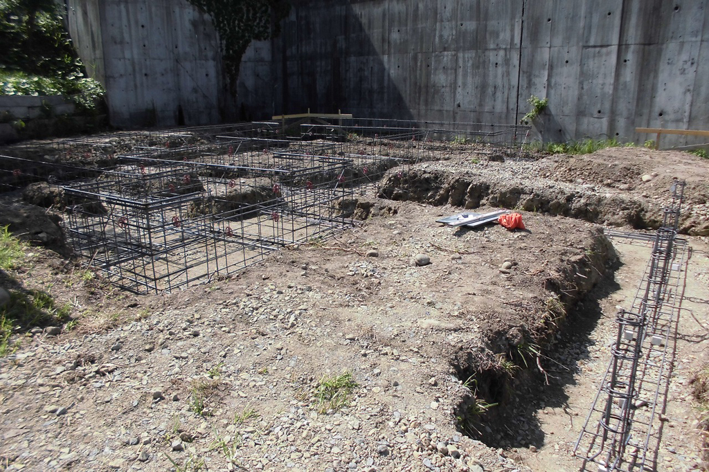 鉄筋が組み終わり、第三者機関のJIOさんに鉄筋検査をしてもらいました。