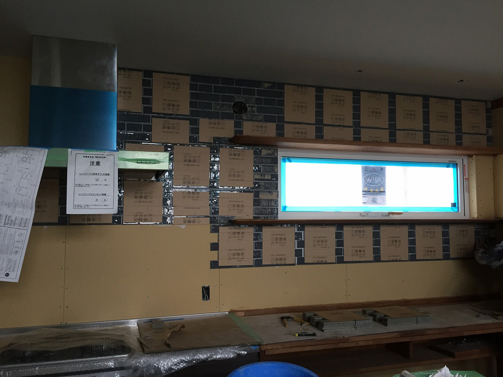 キッチンには、大胆にタイルを全面に貼っていますのでポイントとなります(*^0^*)