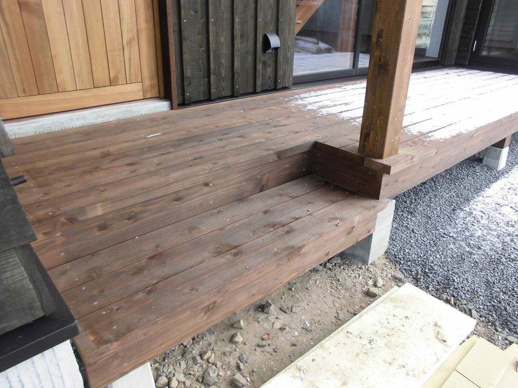玄関ポーチは、ウッドデッキの続きになっていて良い感じです(*^-^*)