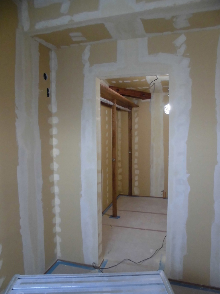 天井と壁の石膏ボードの施工も終盤ですp|  ̄∀ ̄ |q ファイトッ!!