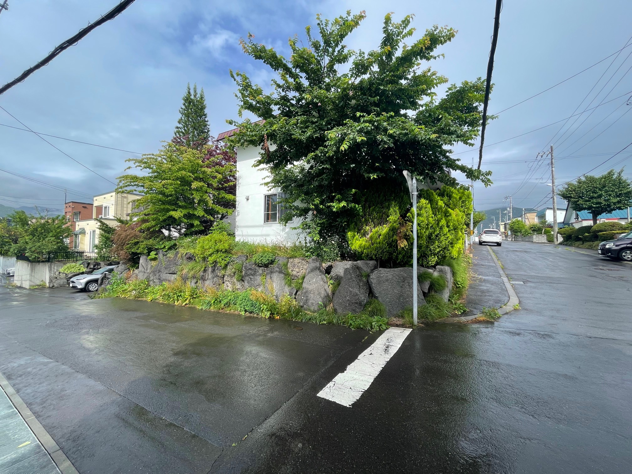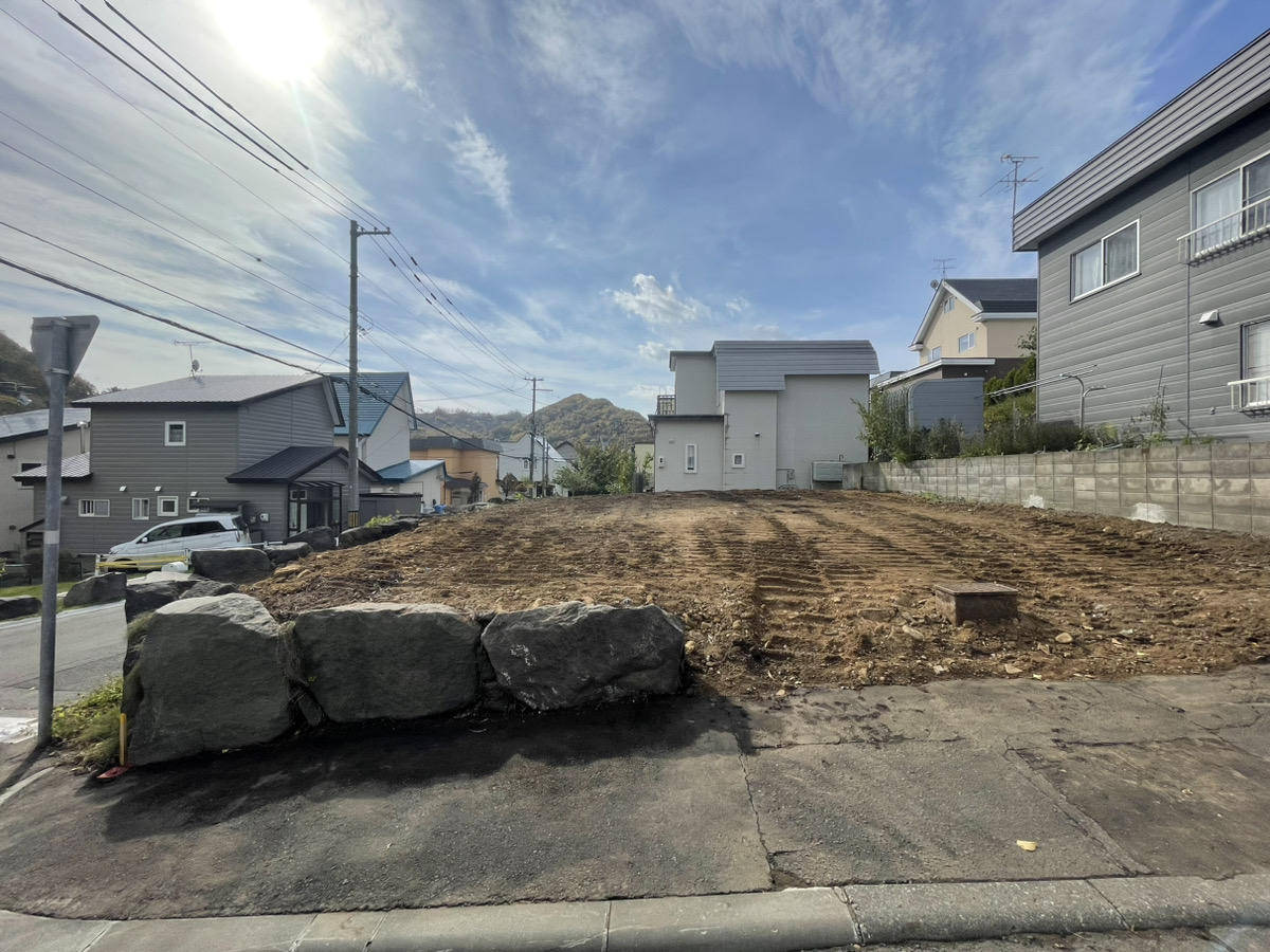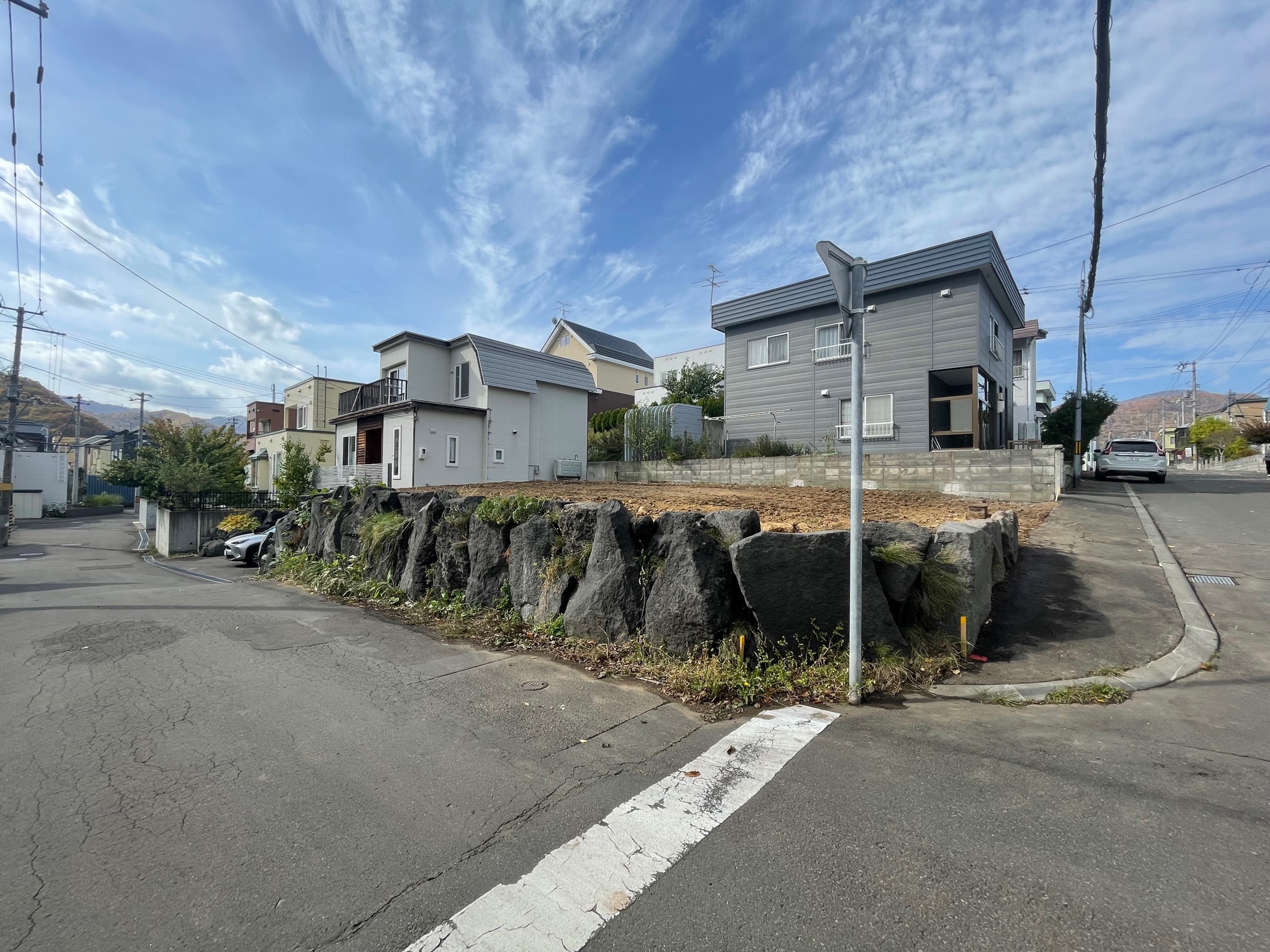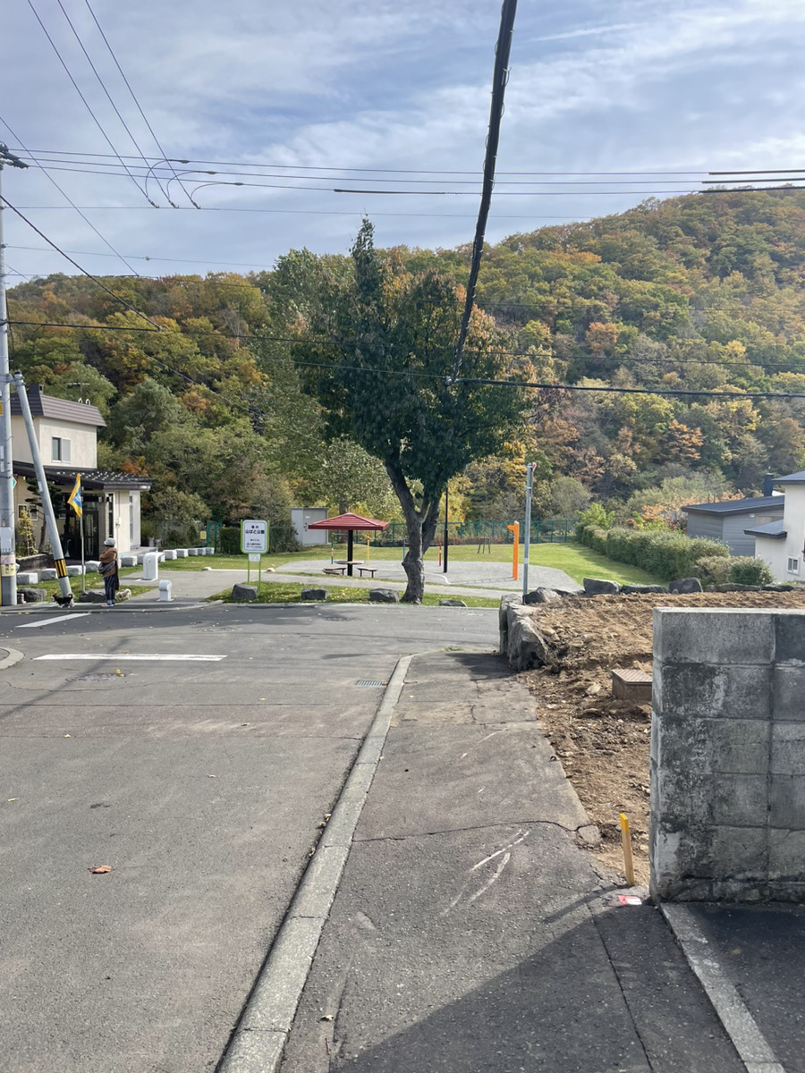 この土地は、土地面積約50坪、北東の角地、東側道路向かいは公園で、奥には山々が見える閑静な住宅地。