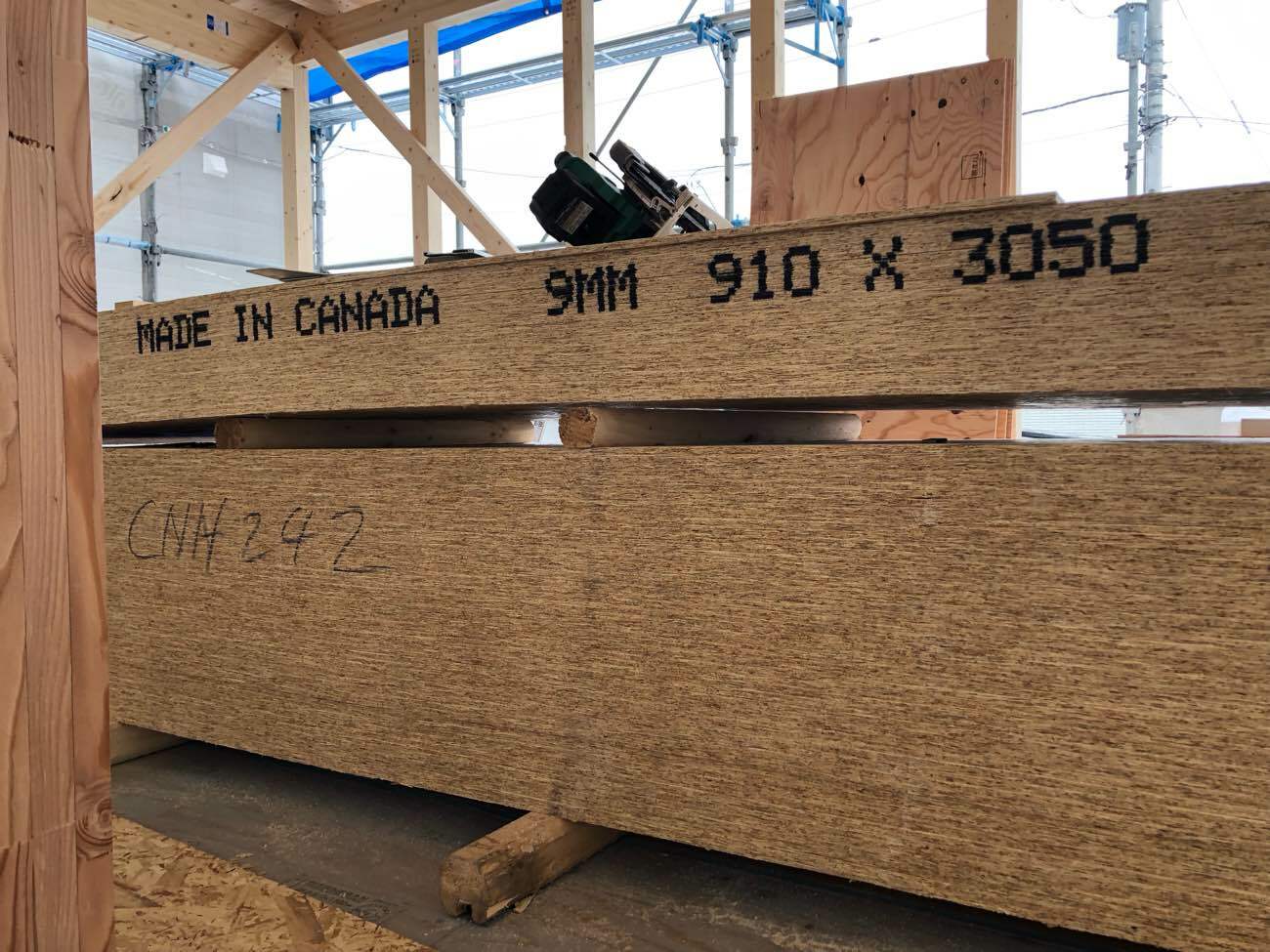 2×4(ツーバイフォー)と言われるサイズの木材と、OSB(オリエンテッド スランド ボード)で組み立てていきます。