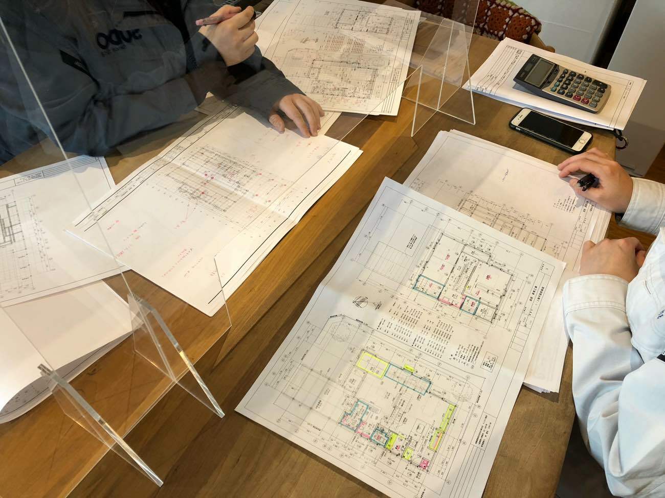 柱や梁の位置や、加工、材料に過不足がないかなどを確認していきます。