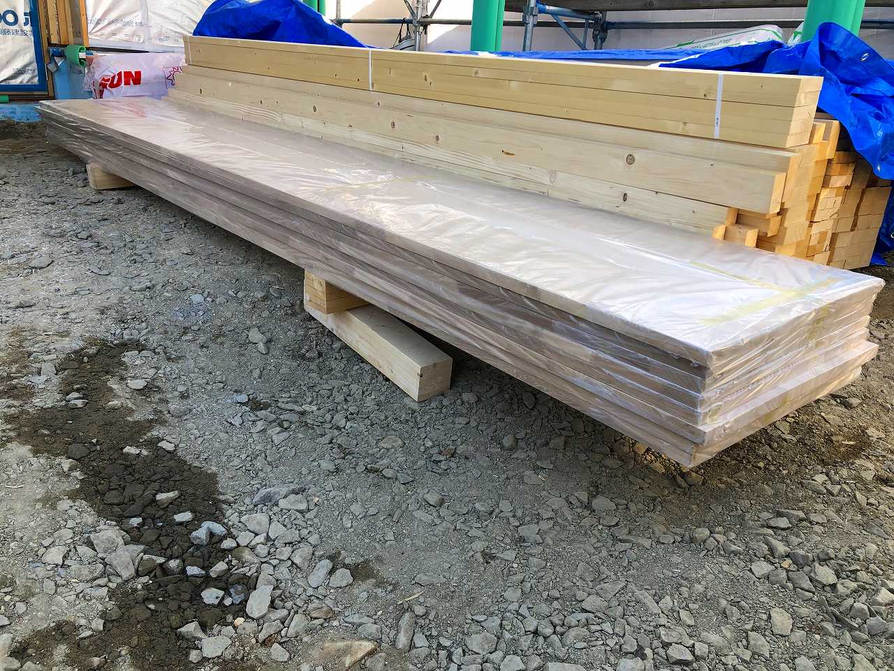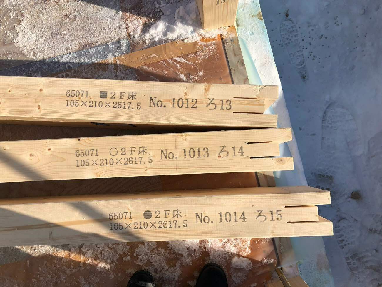 工場から来た木材はどこの材料なのか1本ずつ印字されていて、