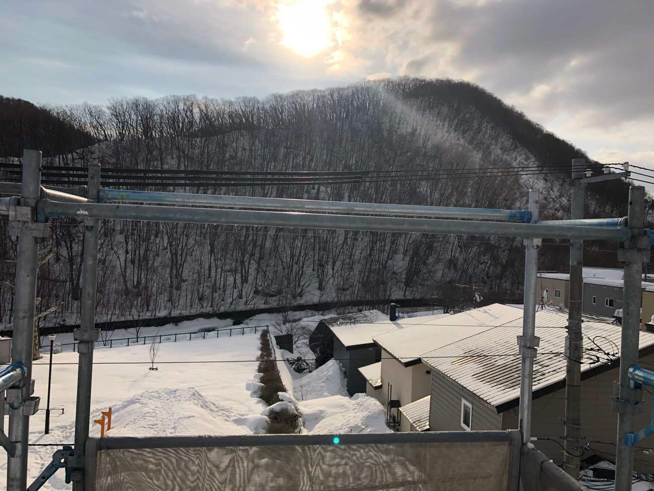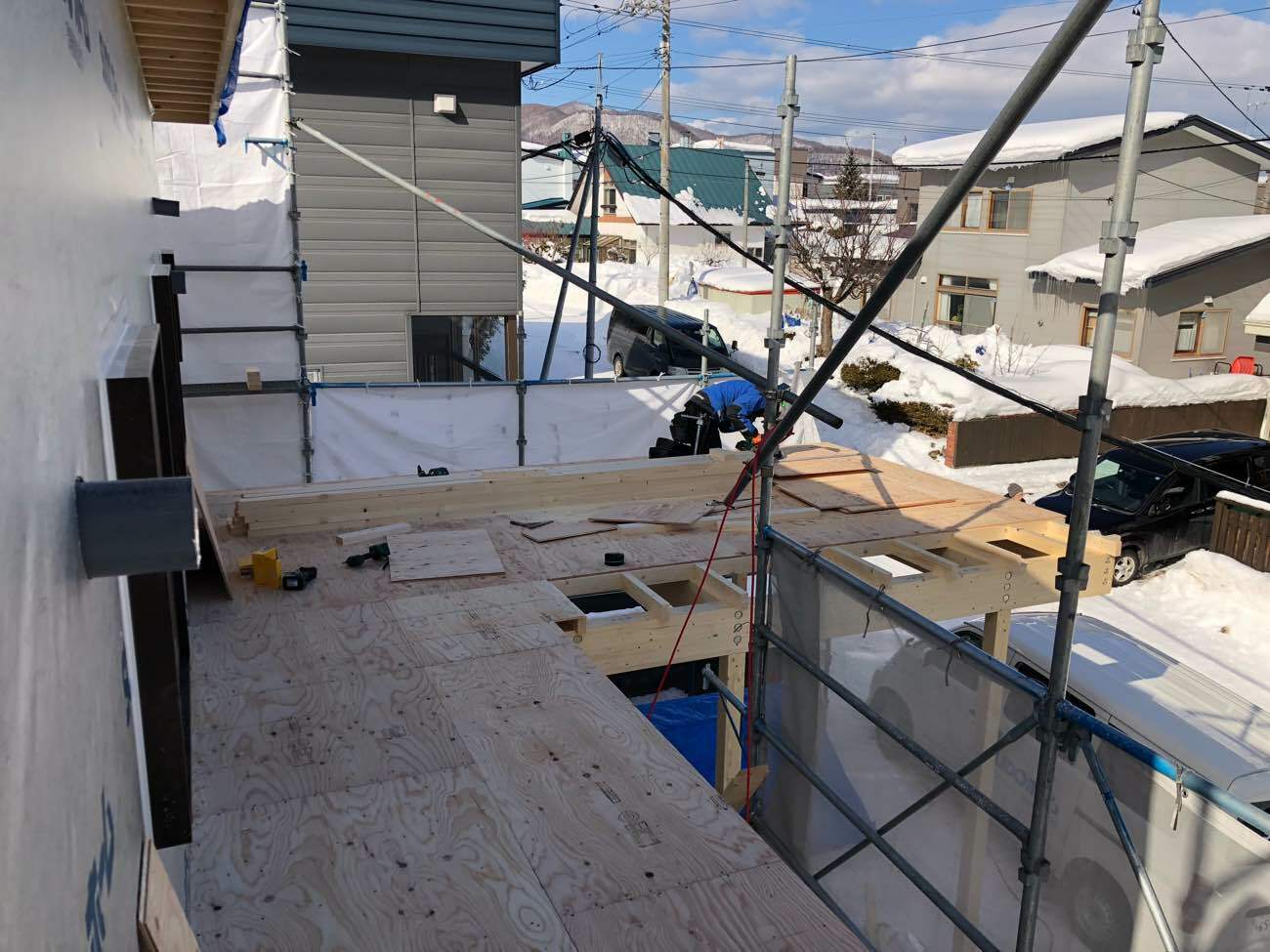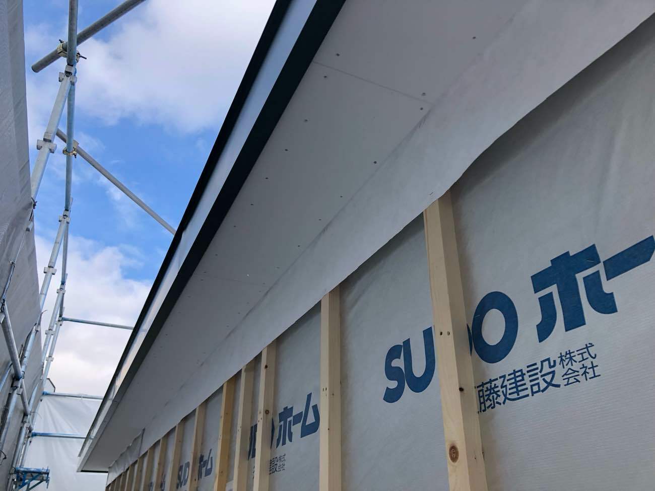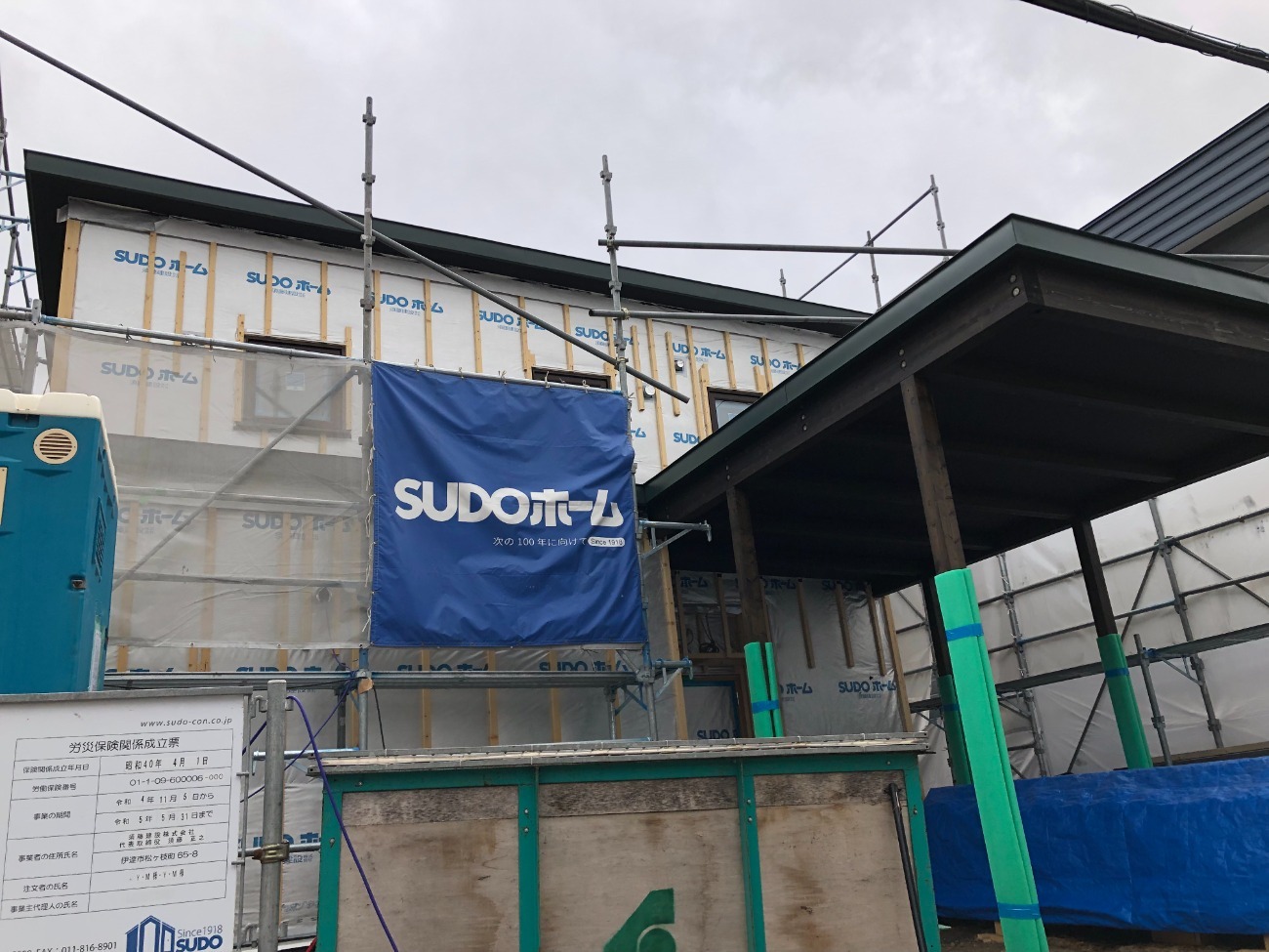 その頃、外部でも壁の付加断熱の施工準備が行われていました。