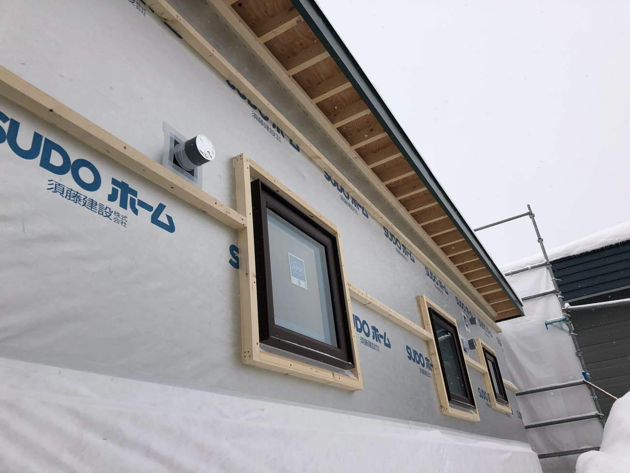 四角い枠は付加断熱下地として、窓の外側に取付されます。