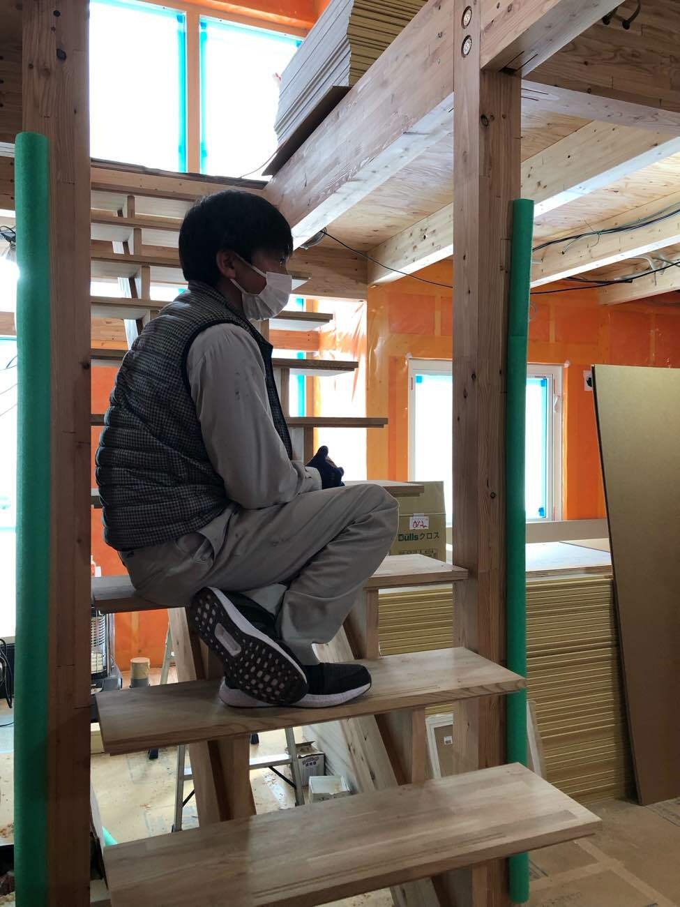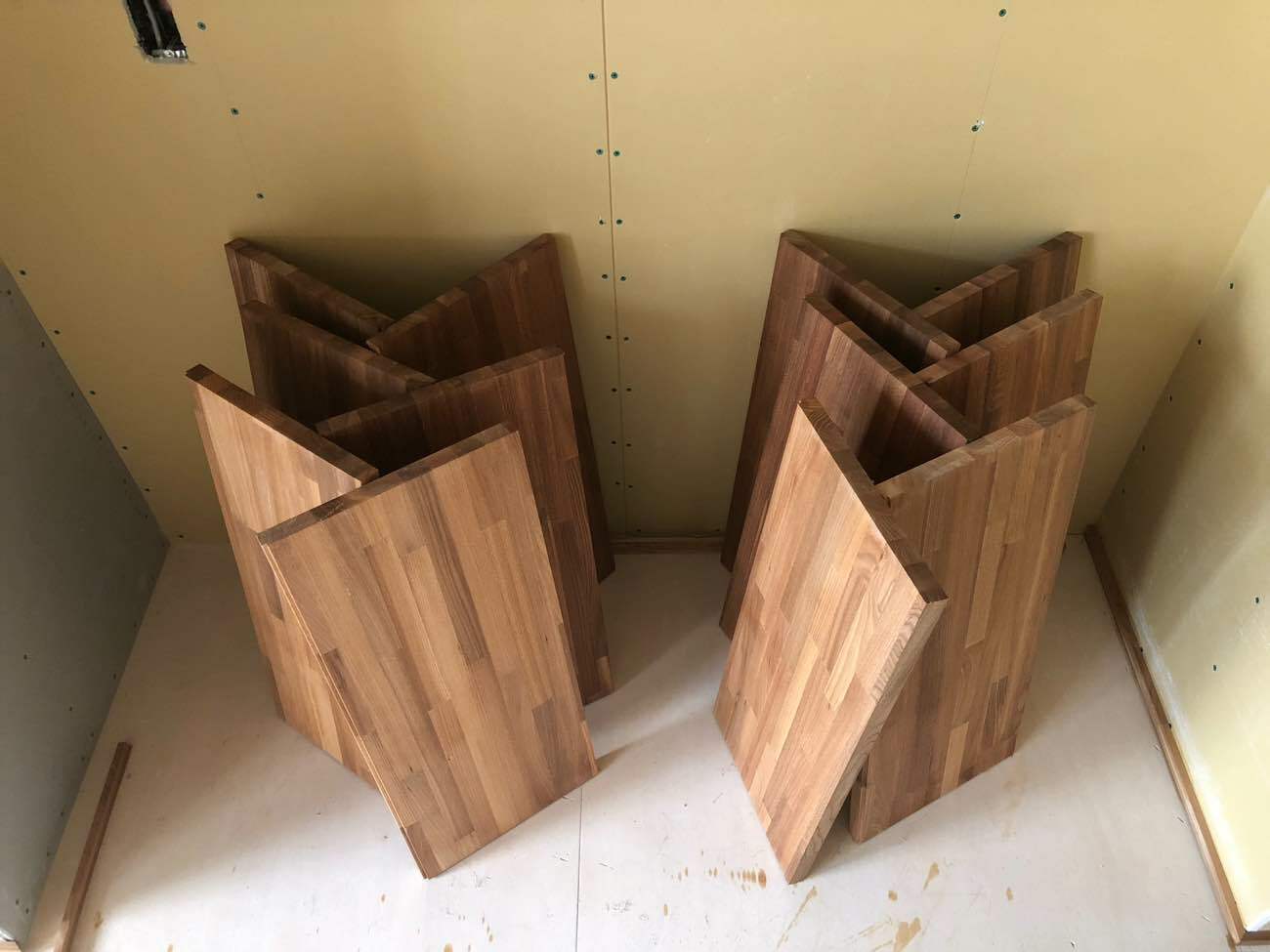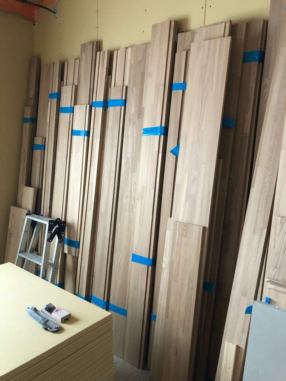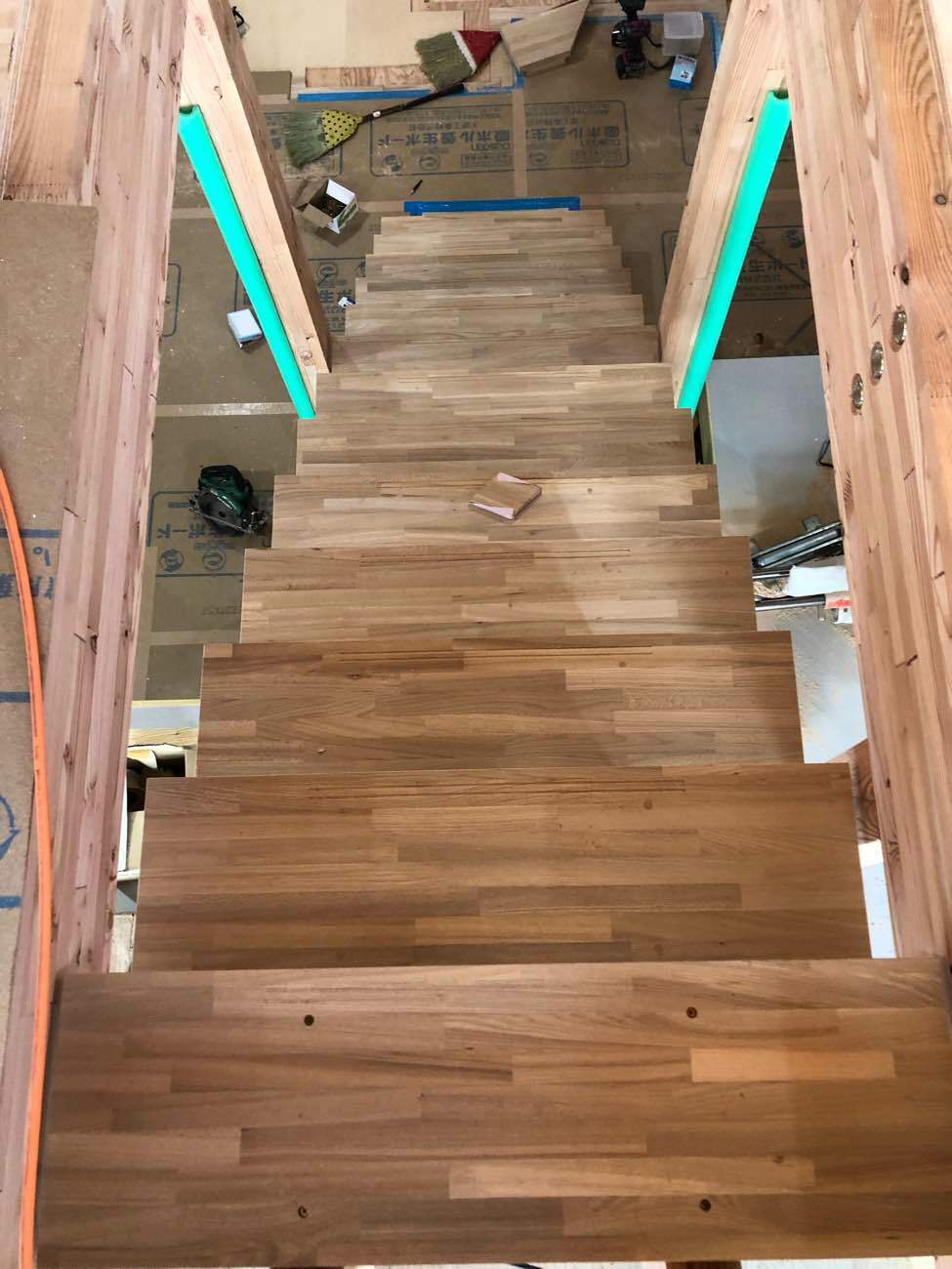 いつもは20mmや5mmの幅で造ることが多いため、とてもレア幅です!内部の造作はニレ集成材だけでなく、ポリランバーという合板も使用しています。