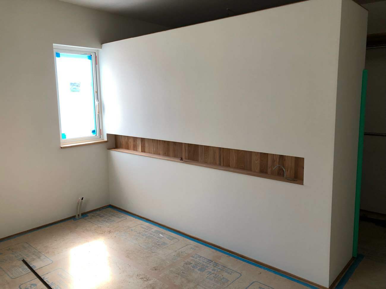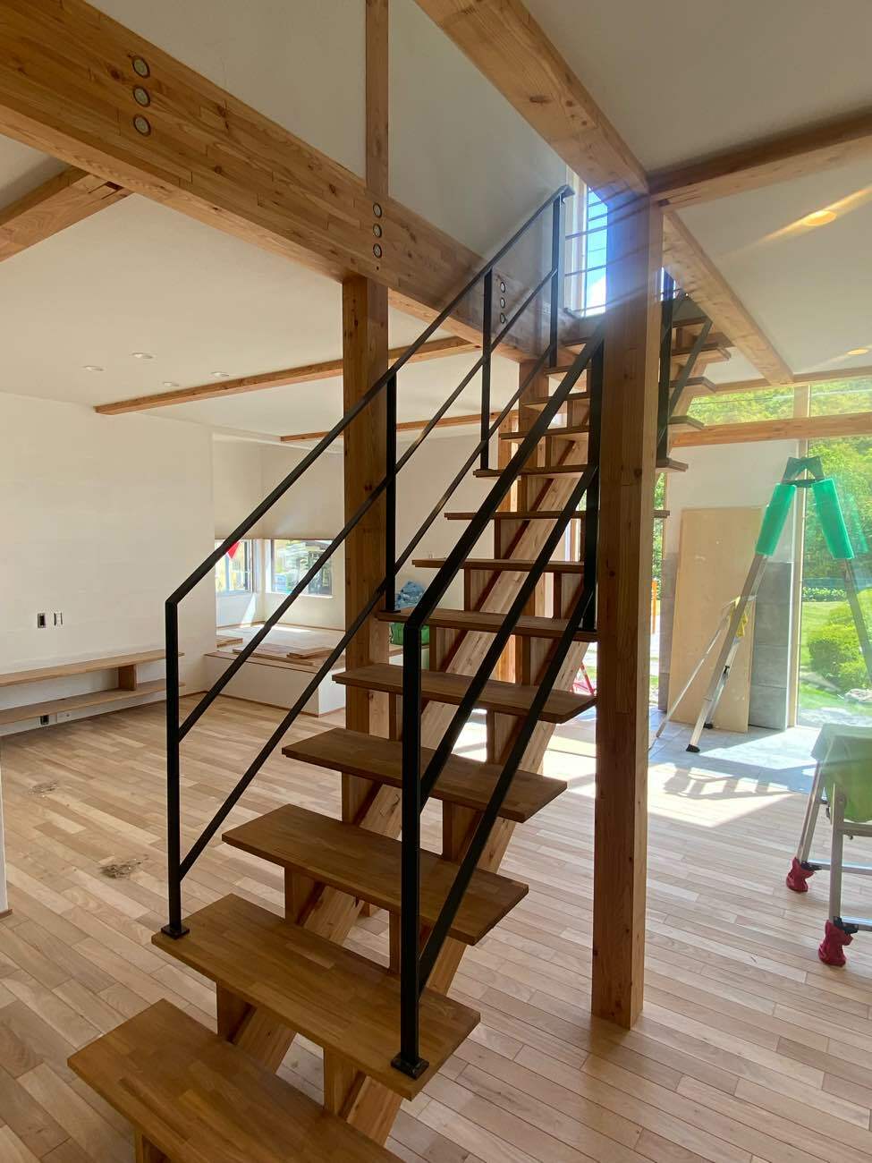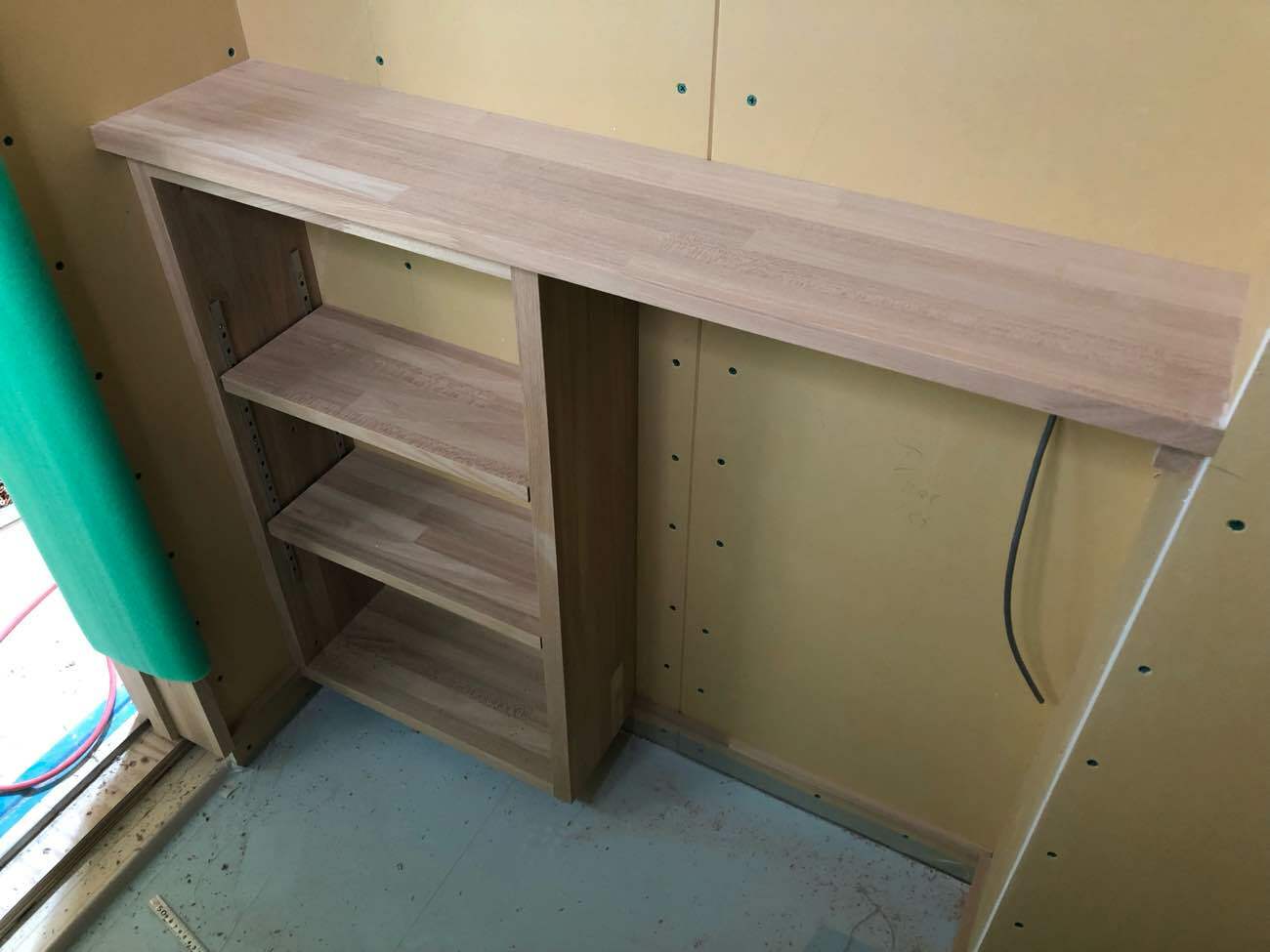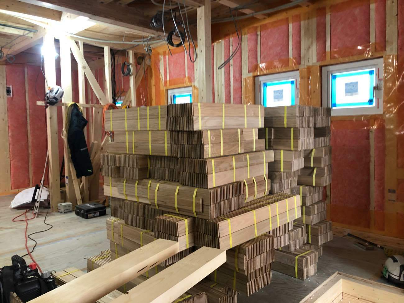 いつもは20mmや5mmの幅で造ることが多いため、とてもレア幅です!内部の造作はニレ集成材だけでなく、ポリランバーという合板も使用しています。