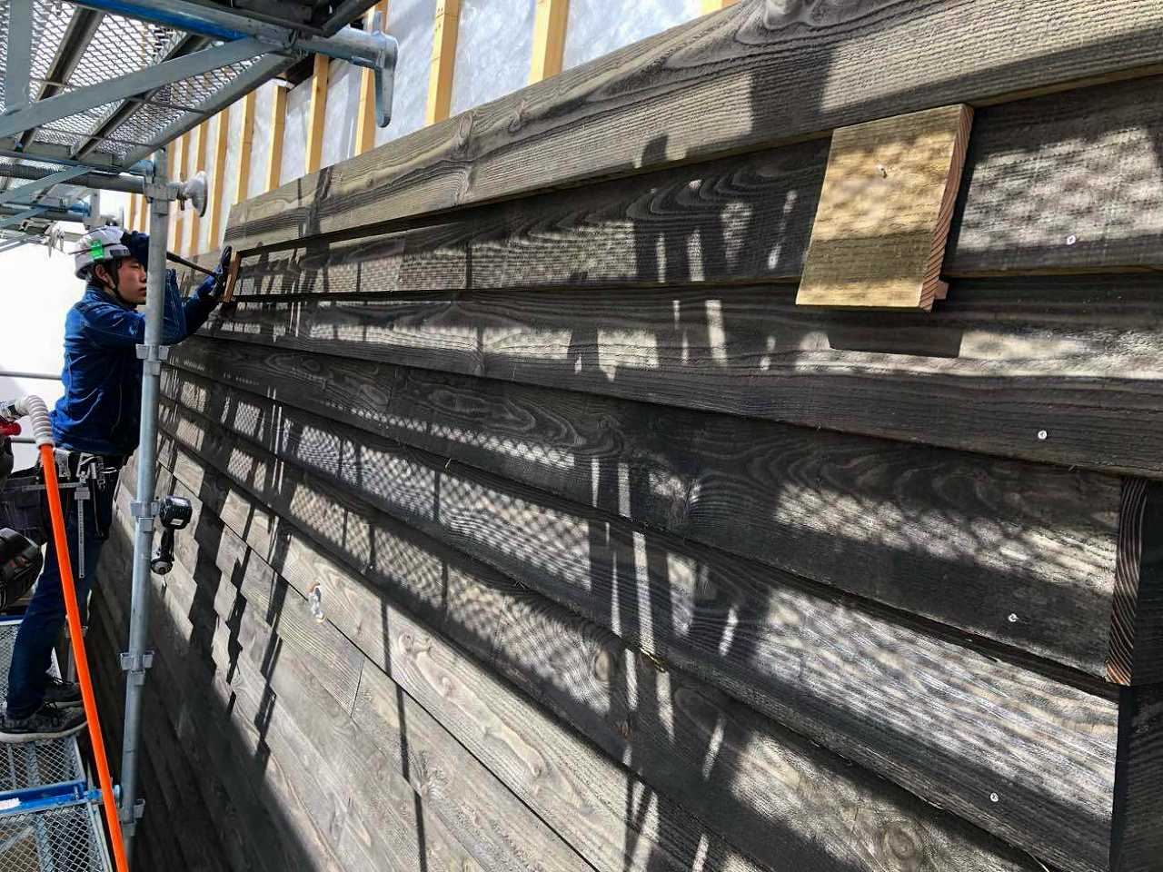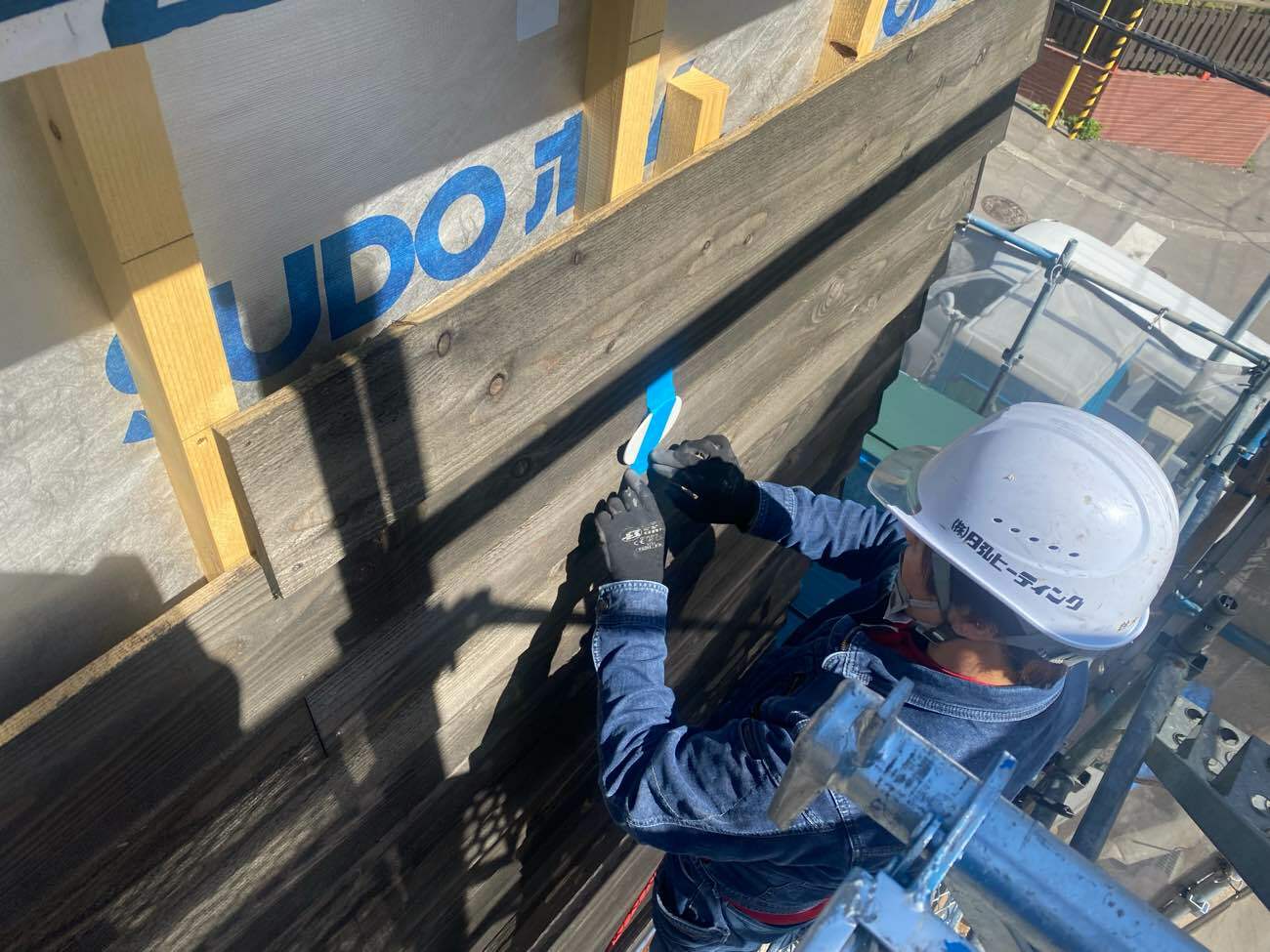 各部屋のカウンターや棚の造作が終わると、大工さんは外壁の板張りへ移ります。
