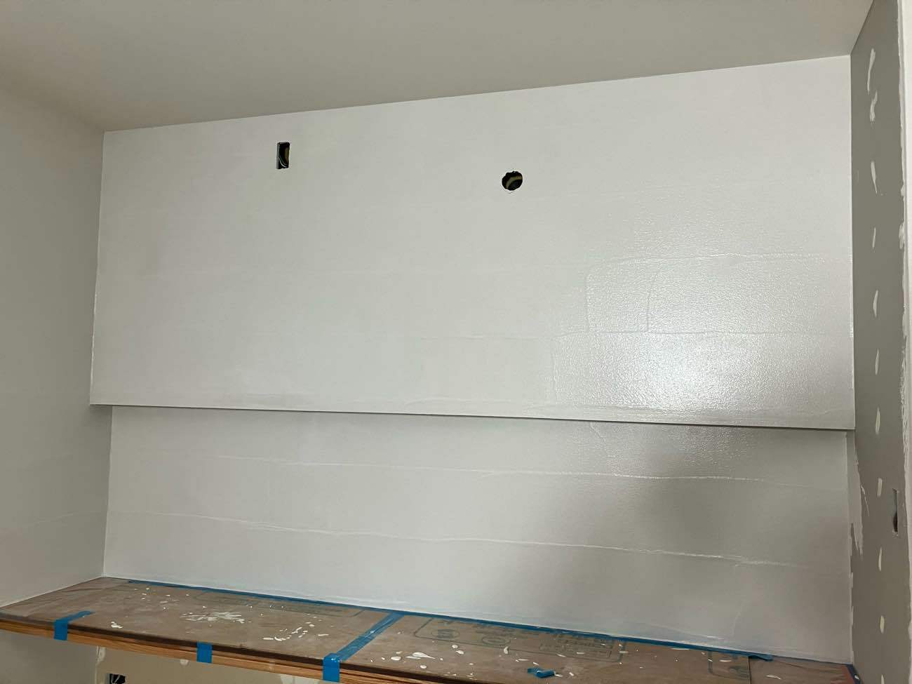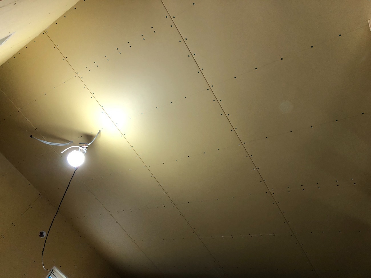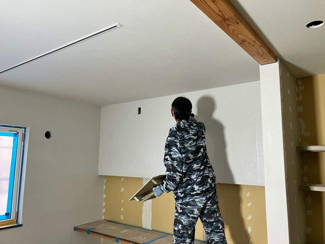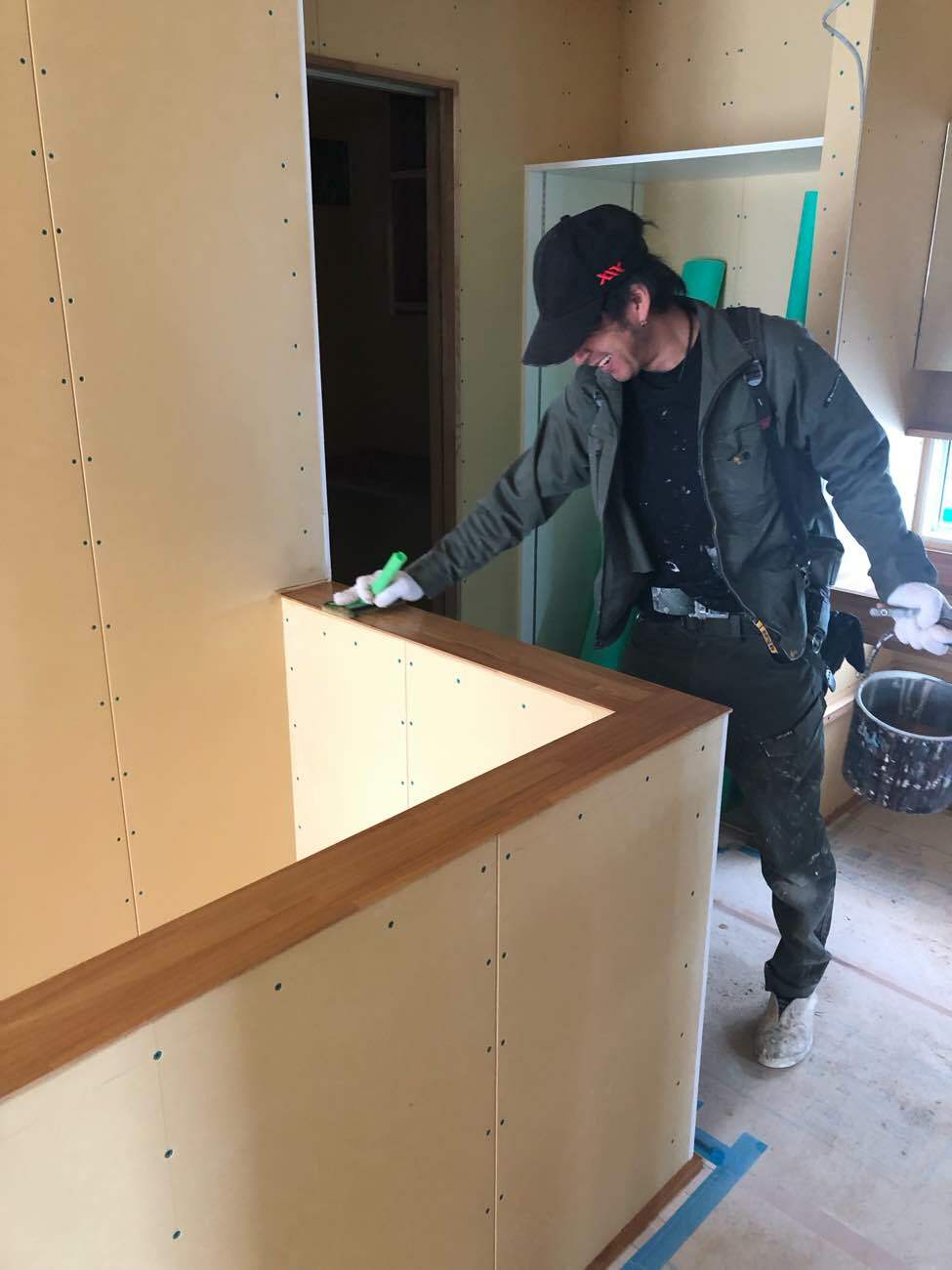 ボードとボードの間やビスを打った部分をパテで埋めて、凹凸をなくす処理をしたあと、