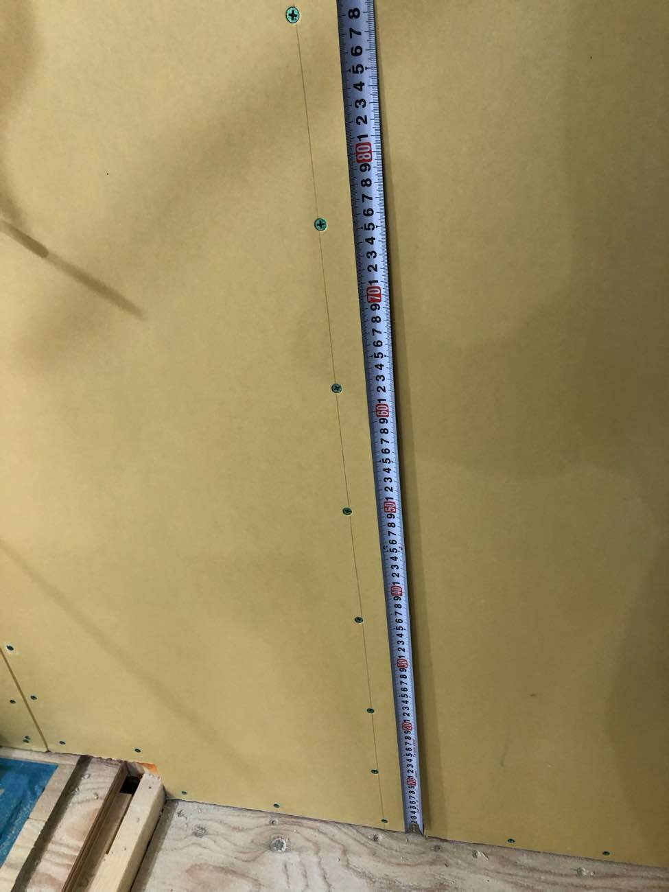 最後に外壁施工中の大工さんの様子です。外壁の割り付けの墨出しをしています。