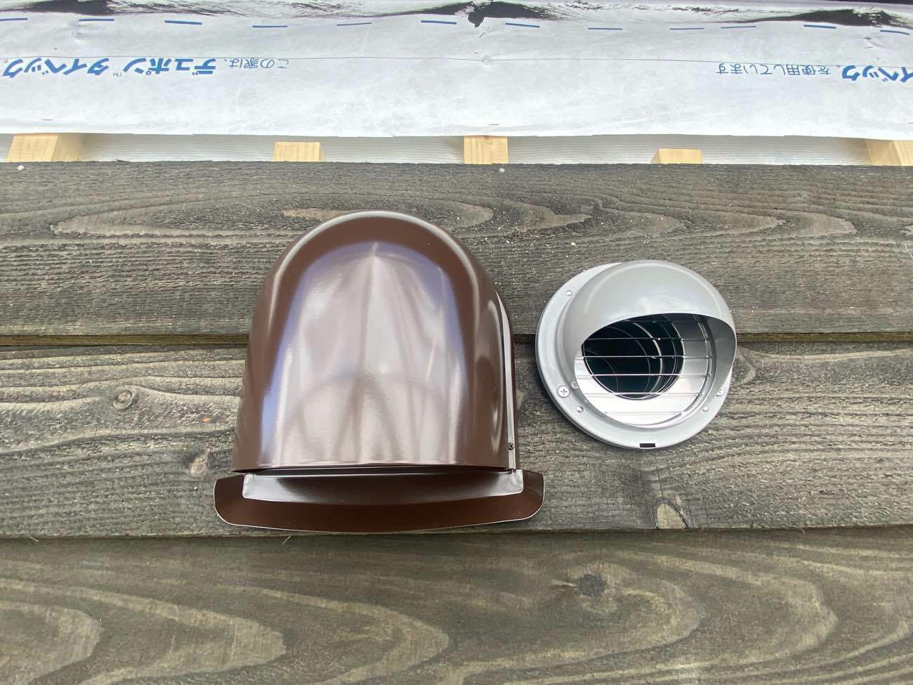 レンジフード(左)と排気口(右)の外部の器具も設置完了です。
