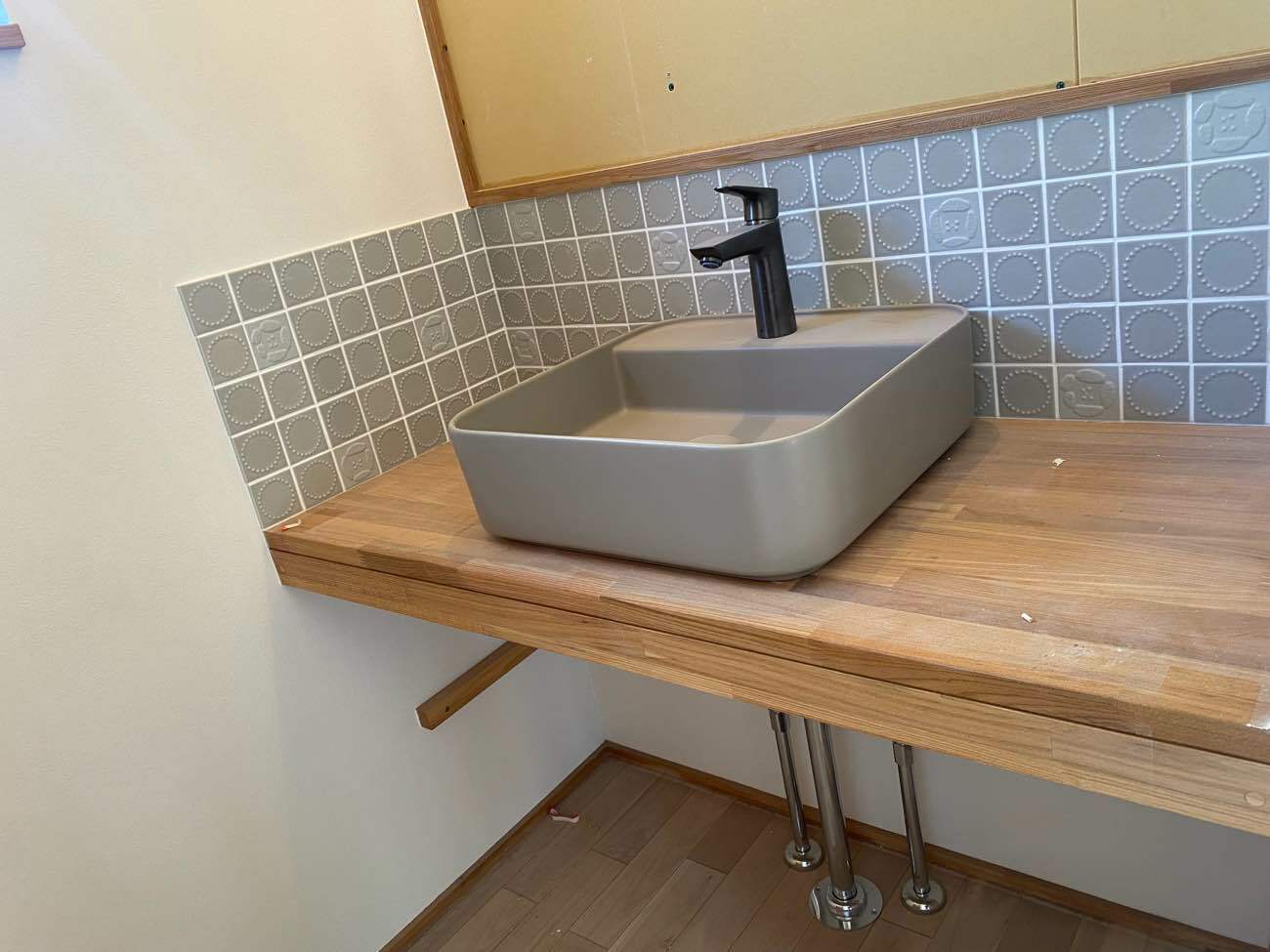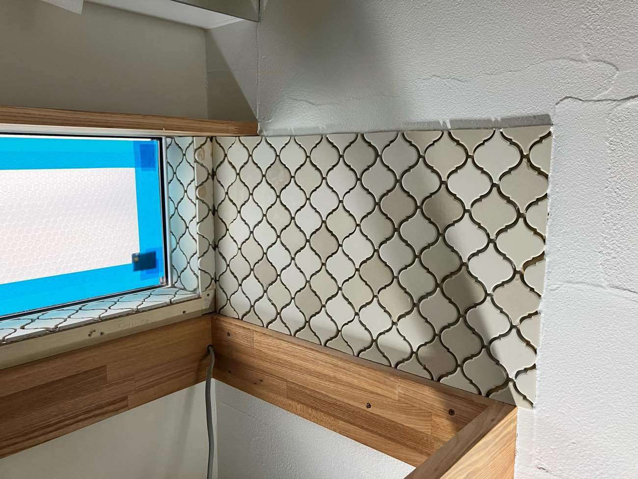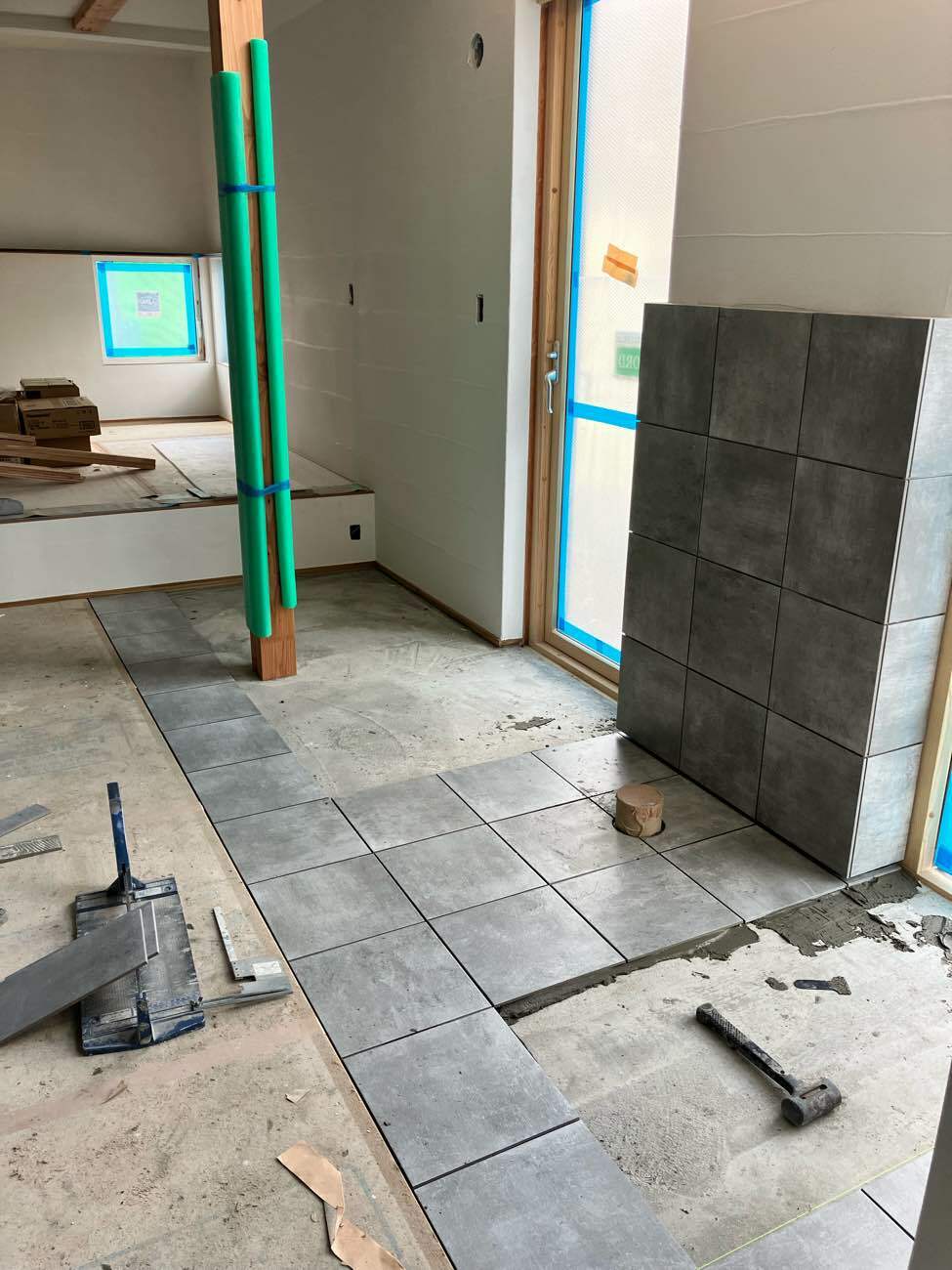 完成した際にはお施主様にも春を楽しんでいただけたらと思います(^^)今回はタイル貼りの様子からお届けします。