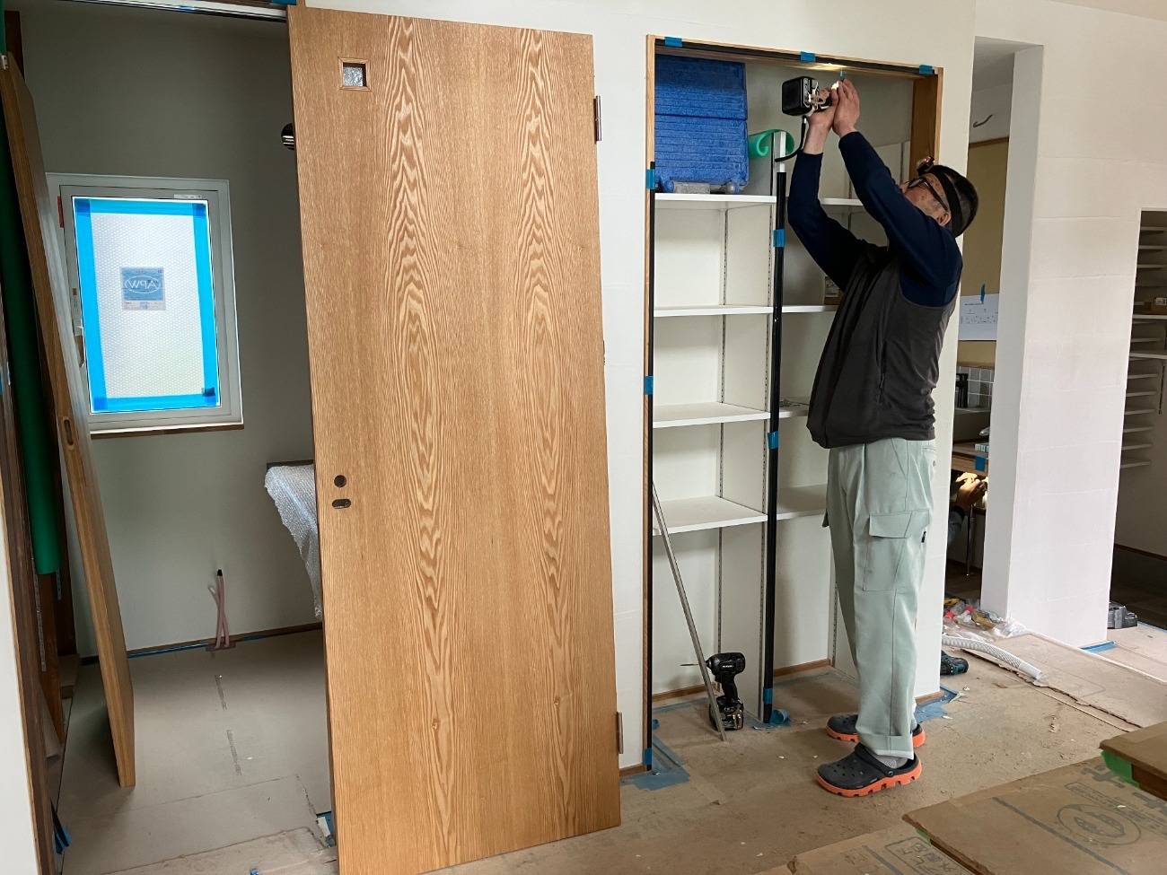 扉を固定するための器具を取り付けたり、着々と完成へ向かっています。