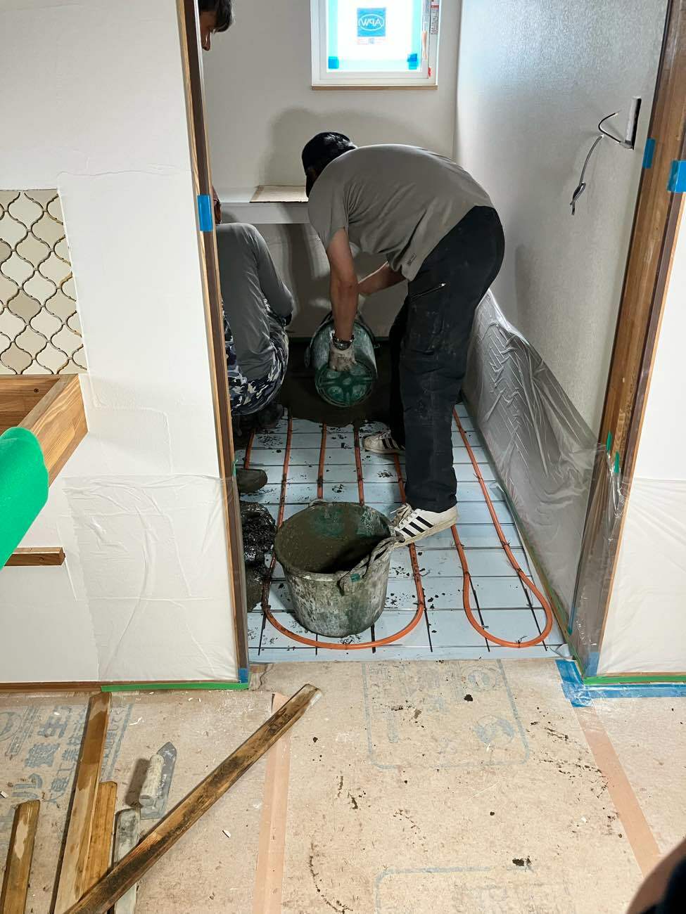続いては床のタイルの下地造りの様子を見ていきましょう!