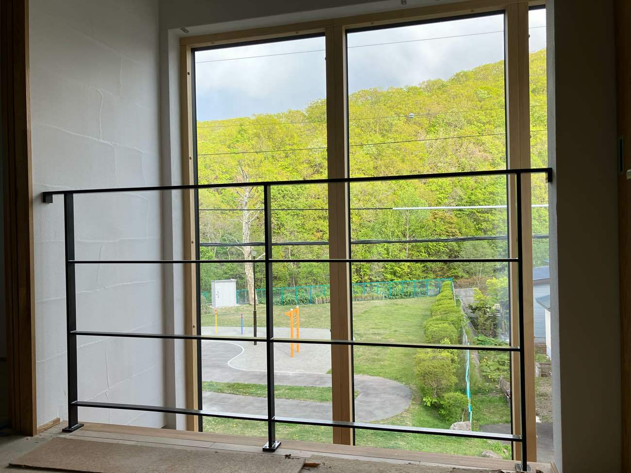 大きな窓から緑が見えています。景色を楽しむ際にも、手すりによって安全に眺められそうです。