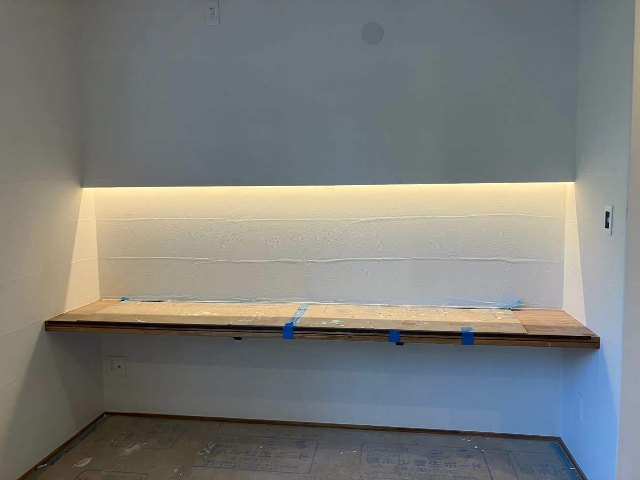 キッチン横のスペースには間接照明としてテープライトが取り付けられました。