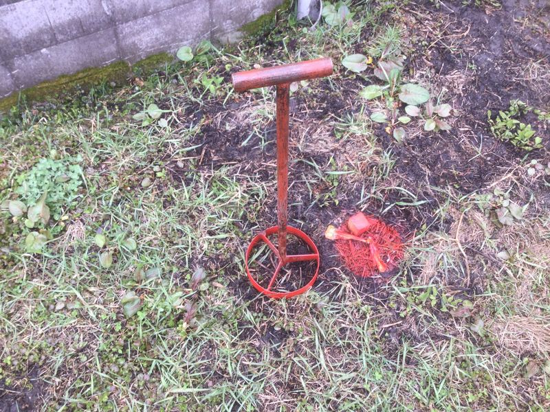圧入するために地面に目印をつけました。地面にある目印わかりますか??・・・
