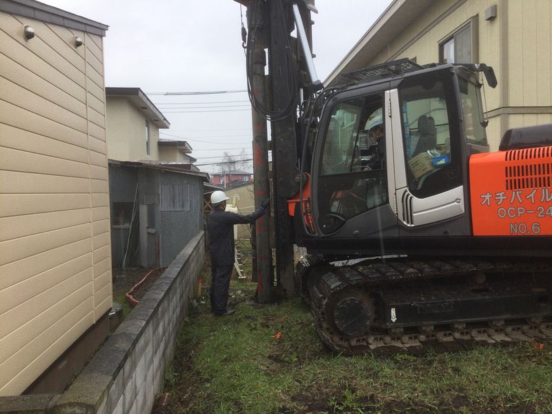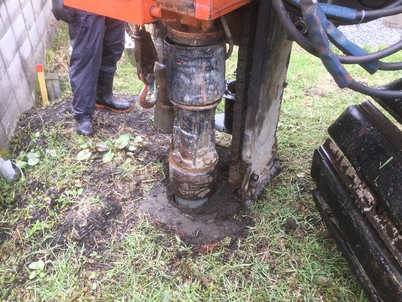 杭打機のオーガーの先端をセットして掘削を開始・・・・
