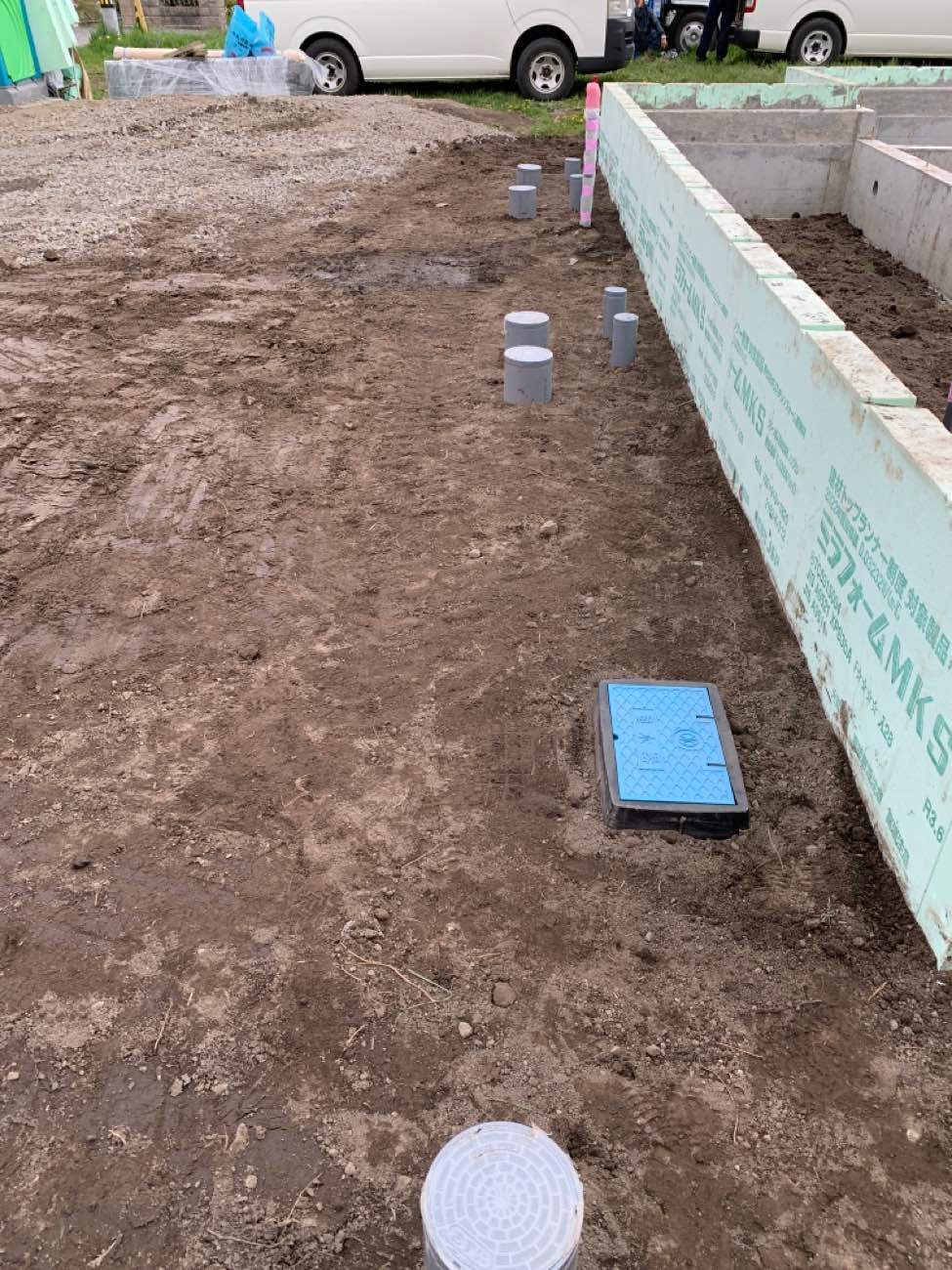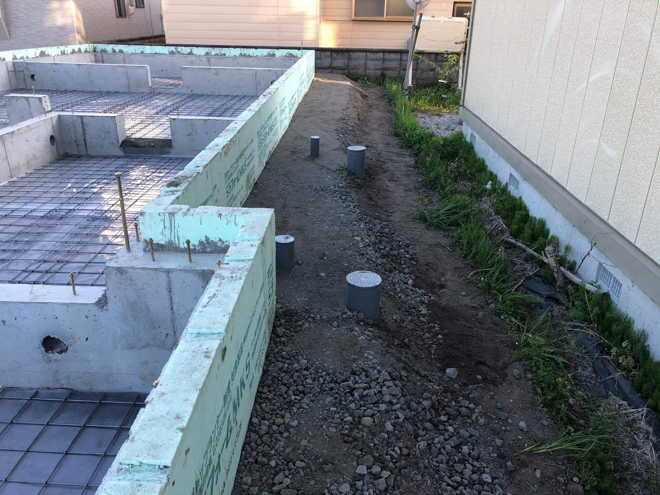 基礎屋さんに相番するのは設備屋さん。。給排水工事を進めています。