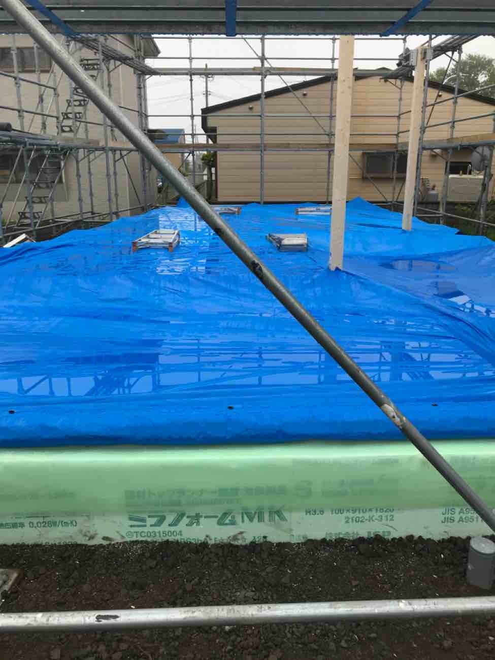 建込中や屋根の下葺きを終えるまでの期間に雨が降りそうな時