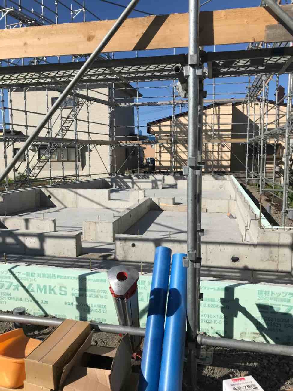基礎工事がすべて完了しました。足場の準備もOKですね♪