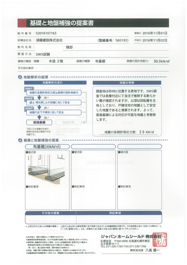 地盤の調査はSWS試験(スウェーデン式サウンディング試験)という方法を用います。