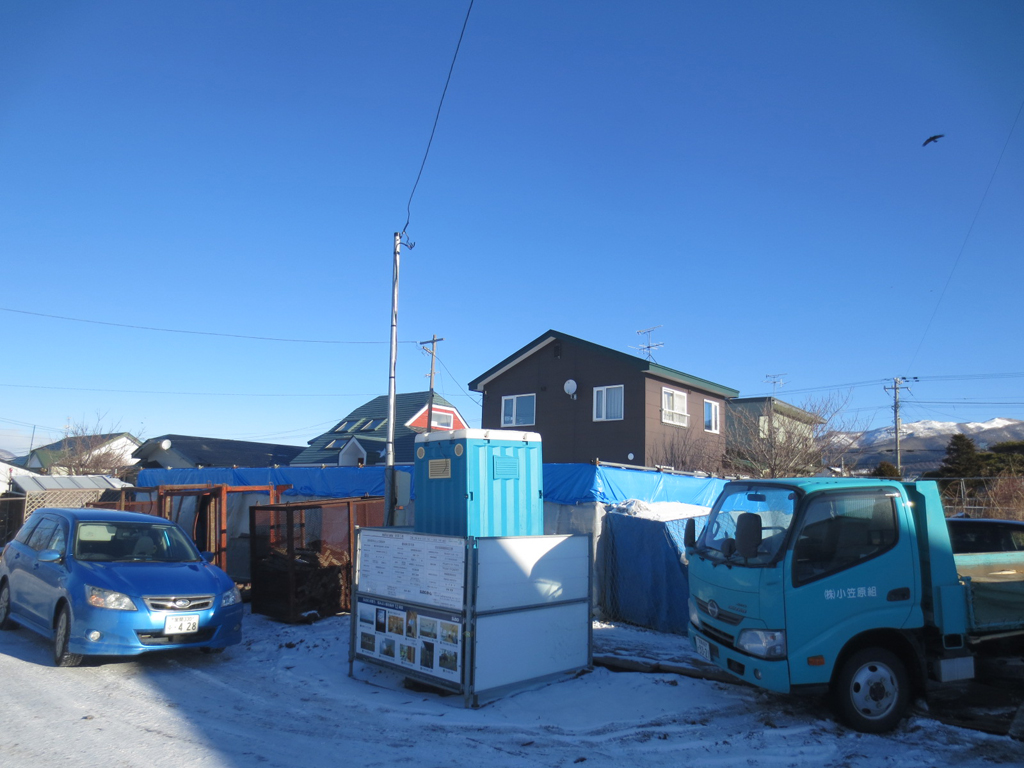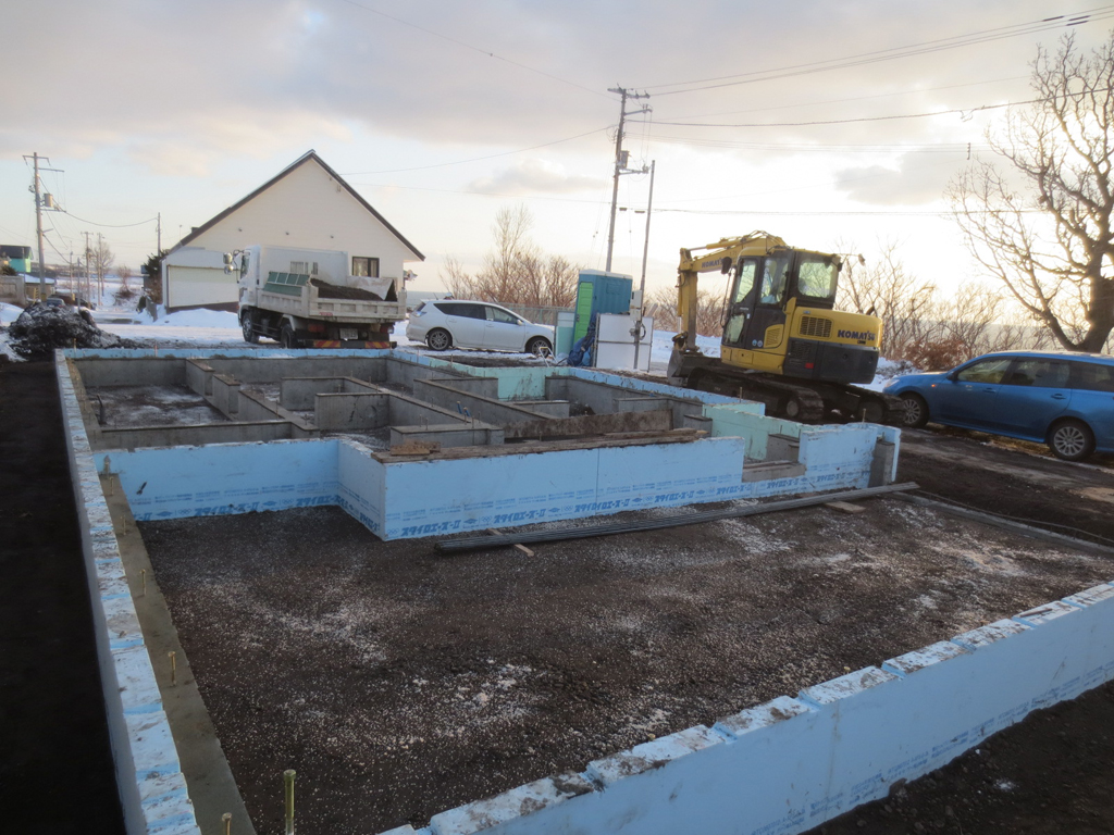 養生上屋のおかげで雪にも悩まされず、基礎工事も完了し埋め戻しまで終わりました。