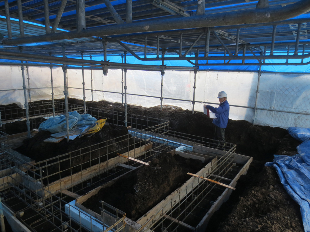8割くらいの現場は杭工事から始まるのですが、この場所は地盤がしっかりしていて、建物の重さに十分耐えられるので掘削から始まります。