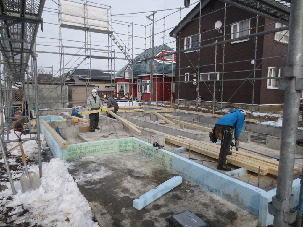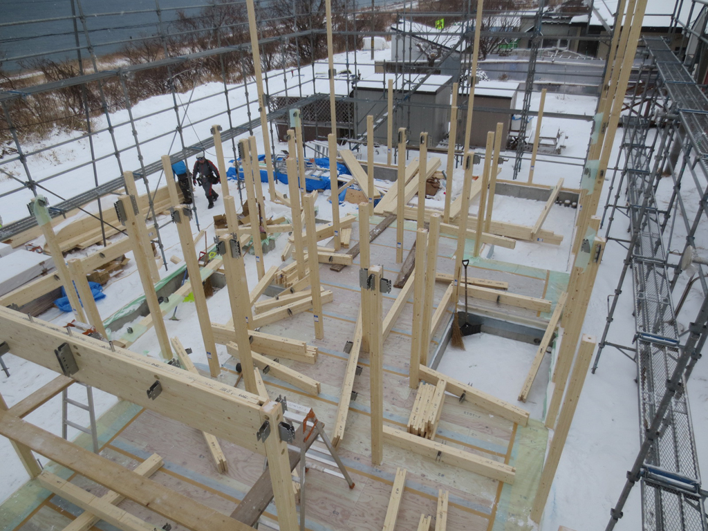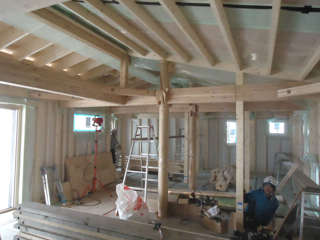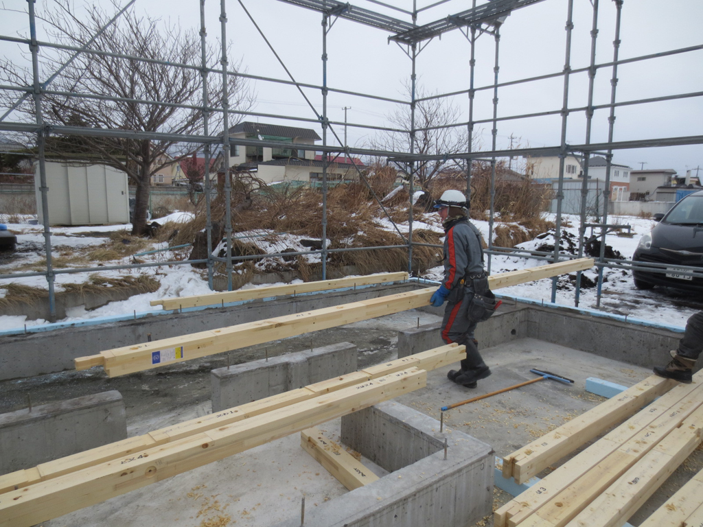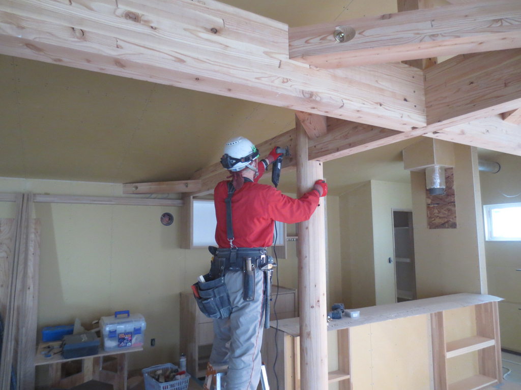 雪がちらついて寒いですが大工さんは弱音も吐かず頑張っております。